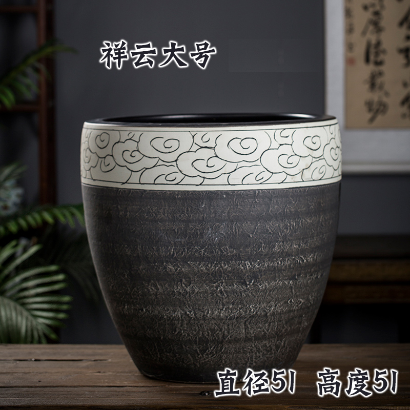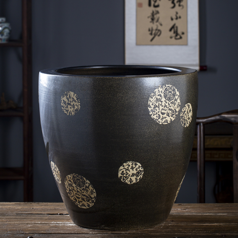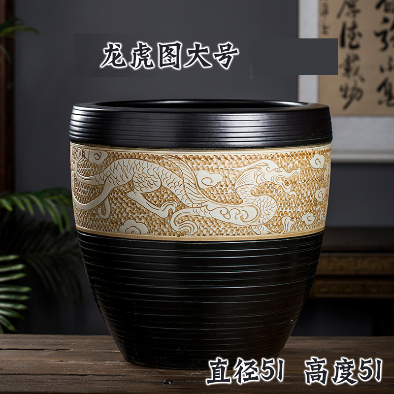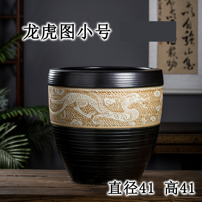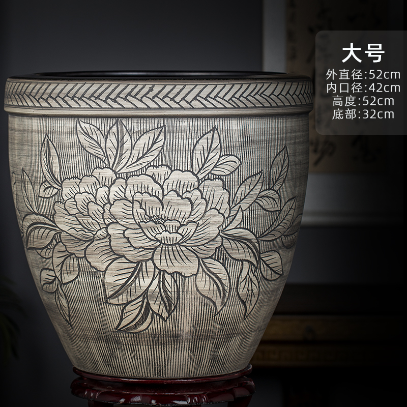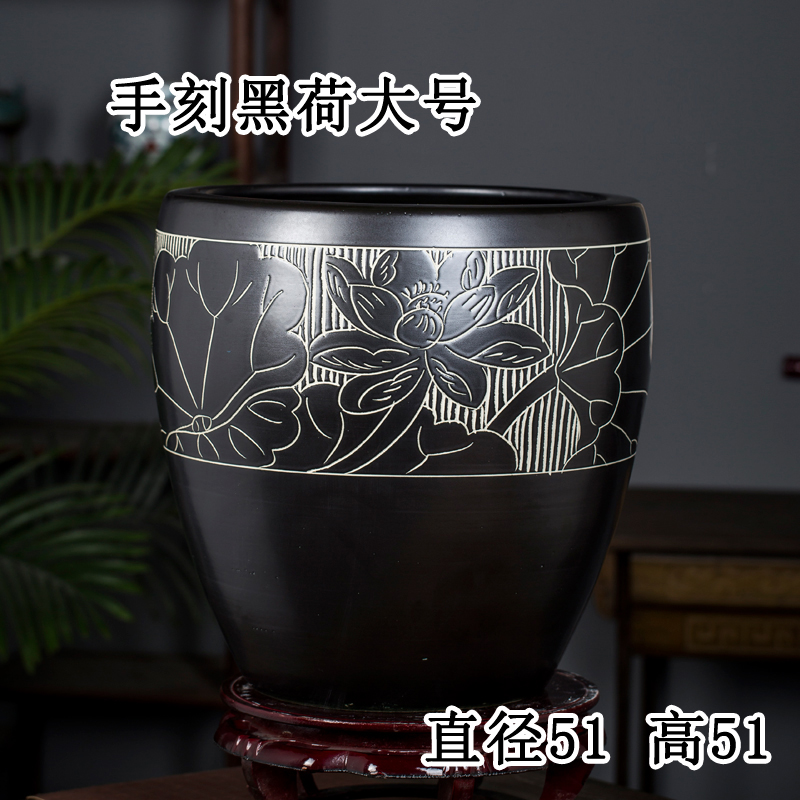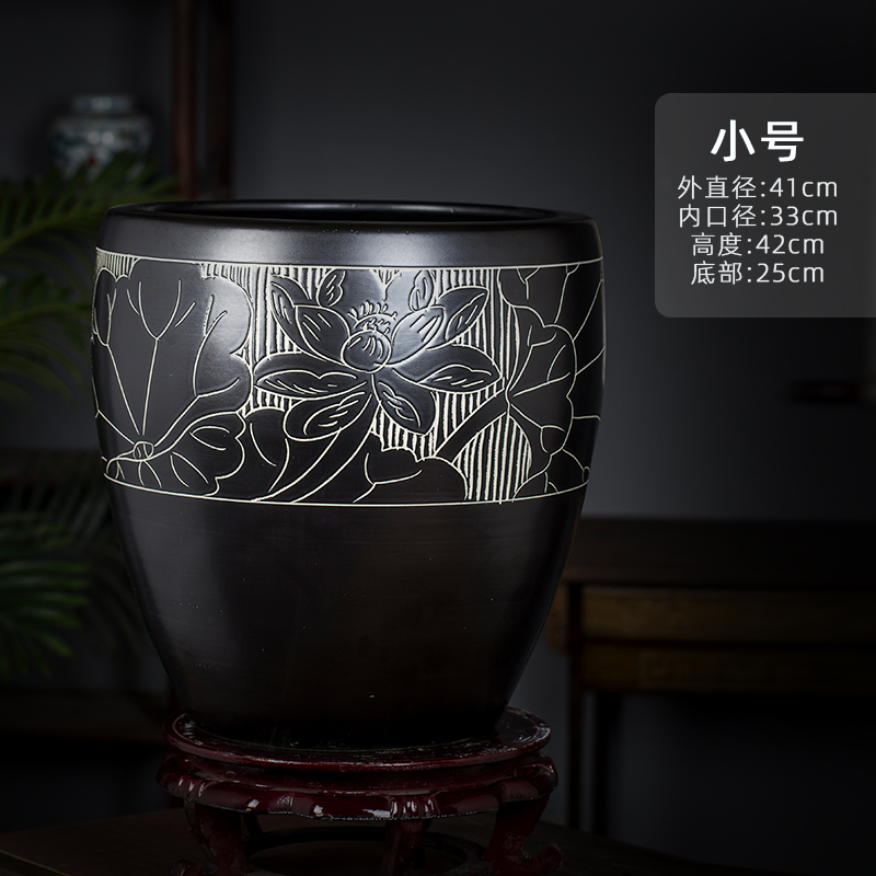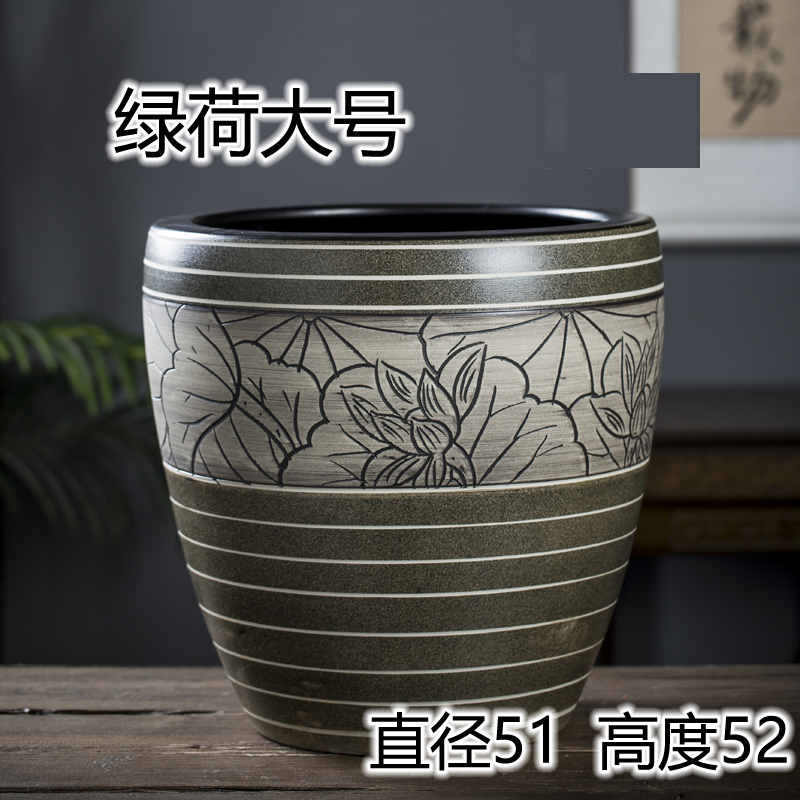 Jingdezhen 세라믹 어항 물 탱크 금붕어 연꽃 그릇 백합 유역 높이 호텔 안뜰 거실 그림 및 서예 탱크