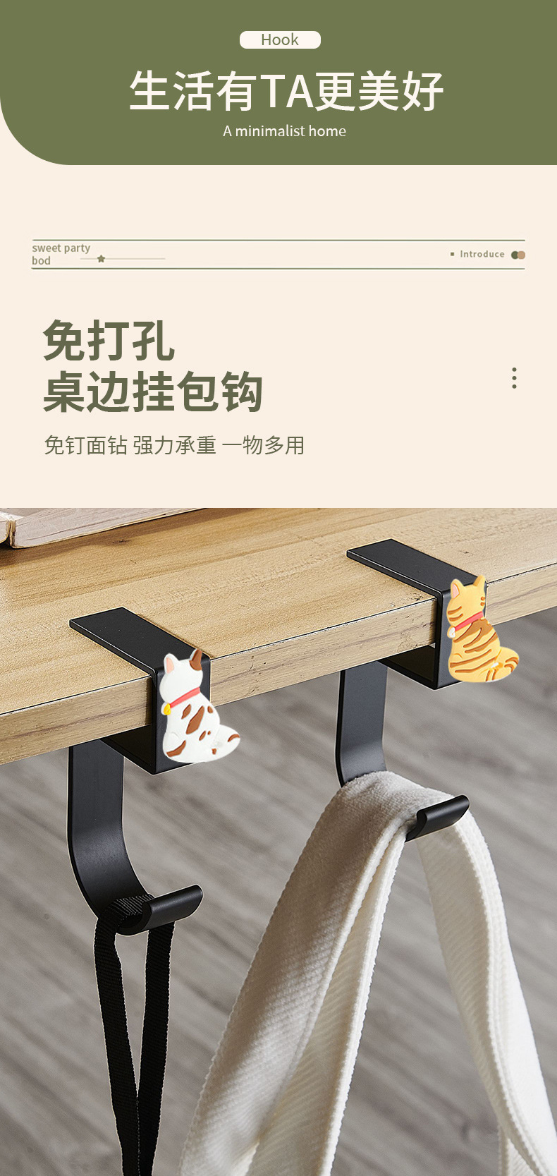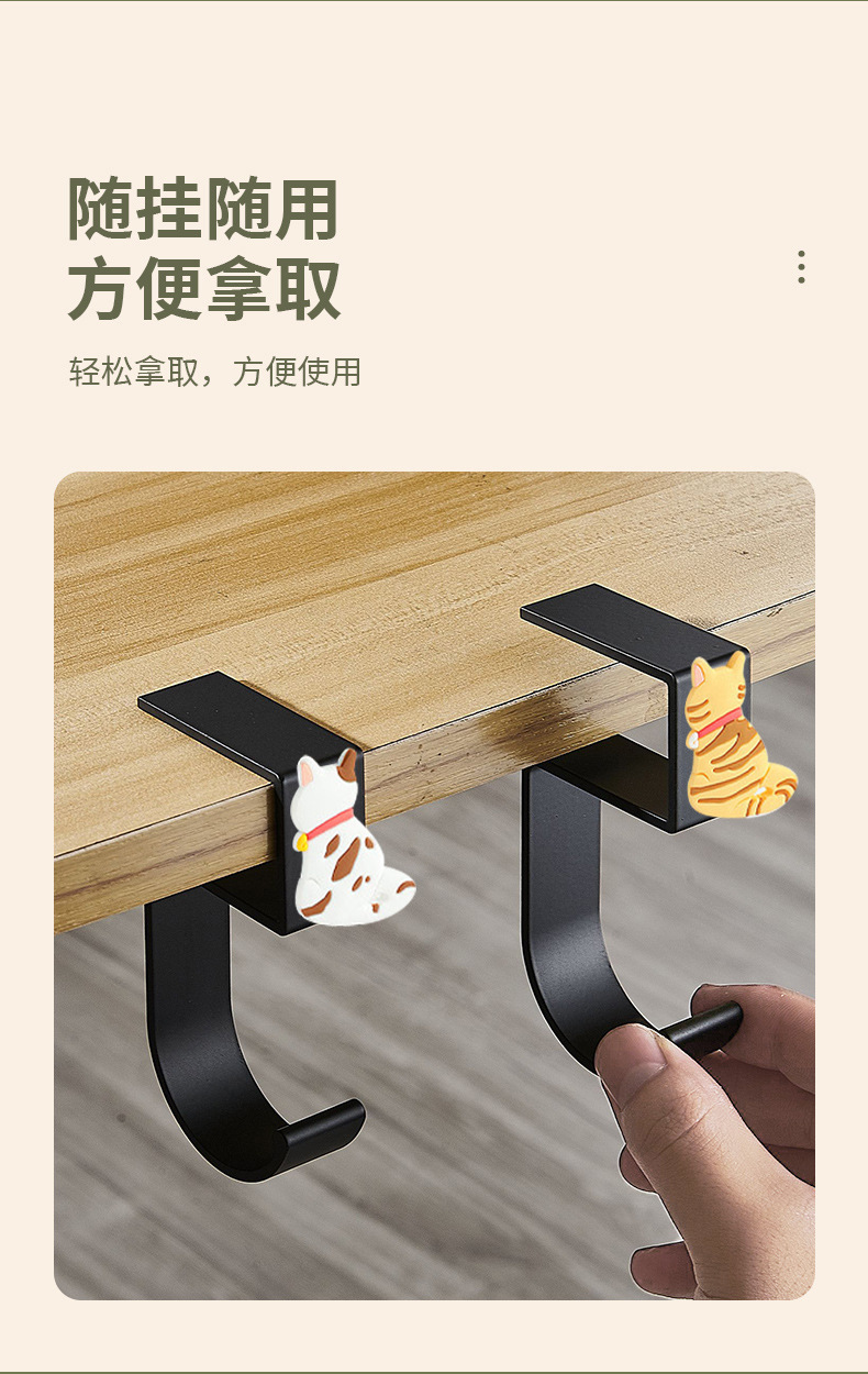 귀여운 고양이 가방 후크 학생 책상 측면 교수형 가방 아티팩트 분리 가능한 데스크탑 교수형 가방 후크 도매