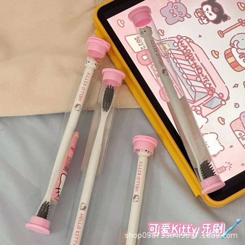 귀여운 만화 키티 부드러운 헤어 칫솔 어린이 성인 유니버설 여행 휴대용 대나무 숯 필라멘트 칫솔스토어 가기