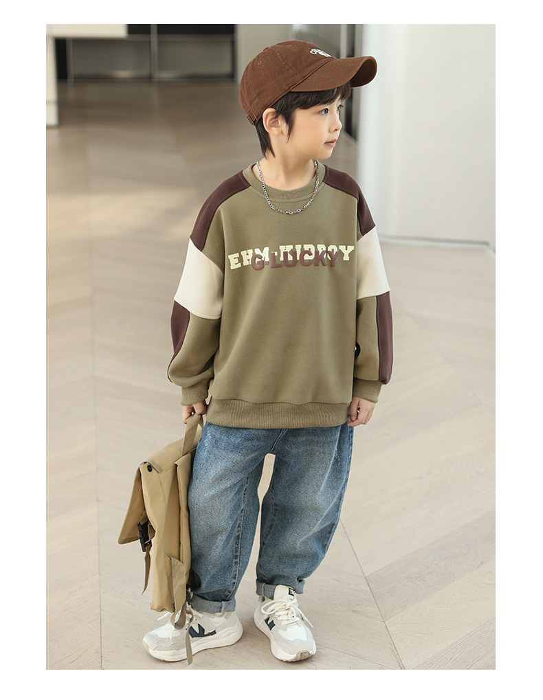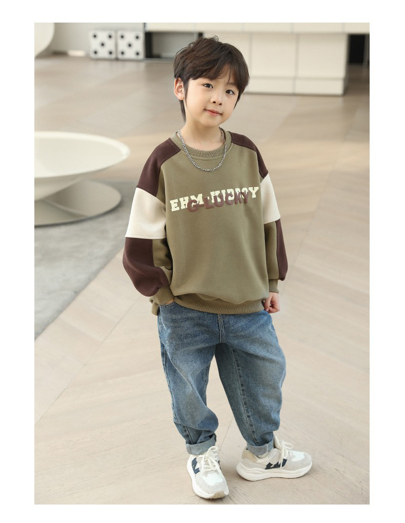 어린이 느슨한 캐주얼 긴팔 풀오버 탑 어린이 가을 패션 유행 편지 인쇄 둥근 목 땀스토어 가기