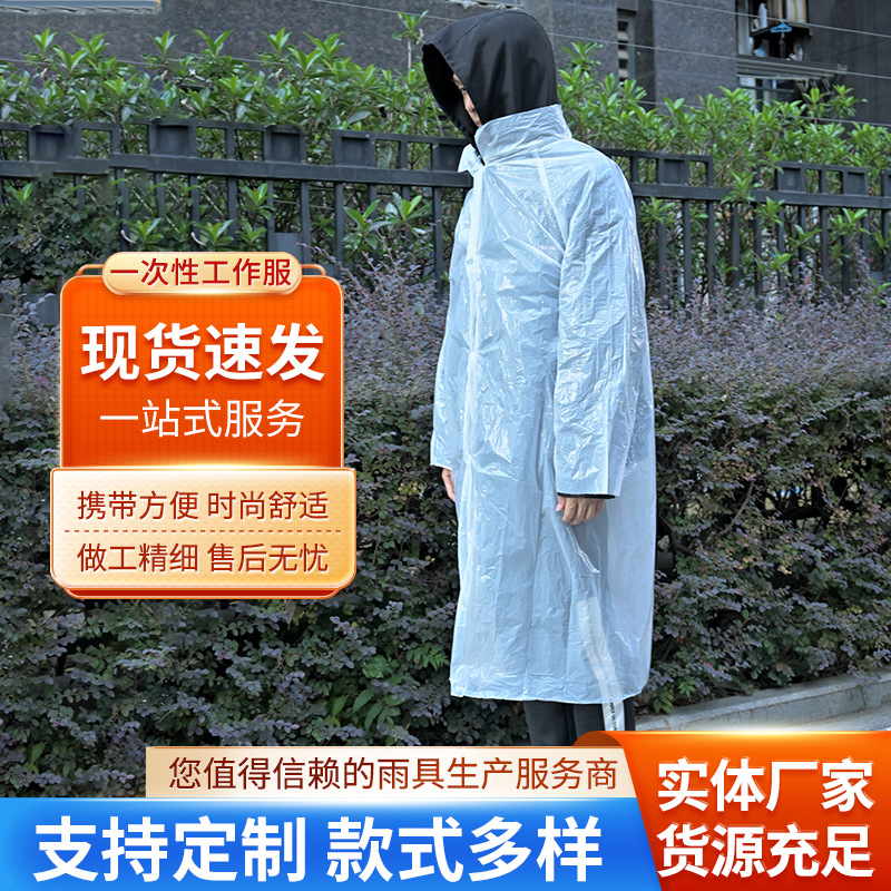 일회용 플라스틱 버클 Led 작업 옷 성인 어린이 긴 원피스 휴대용 투명 비옷 판초