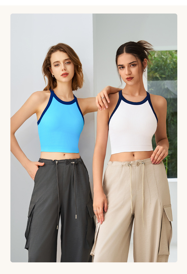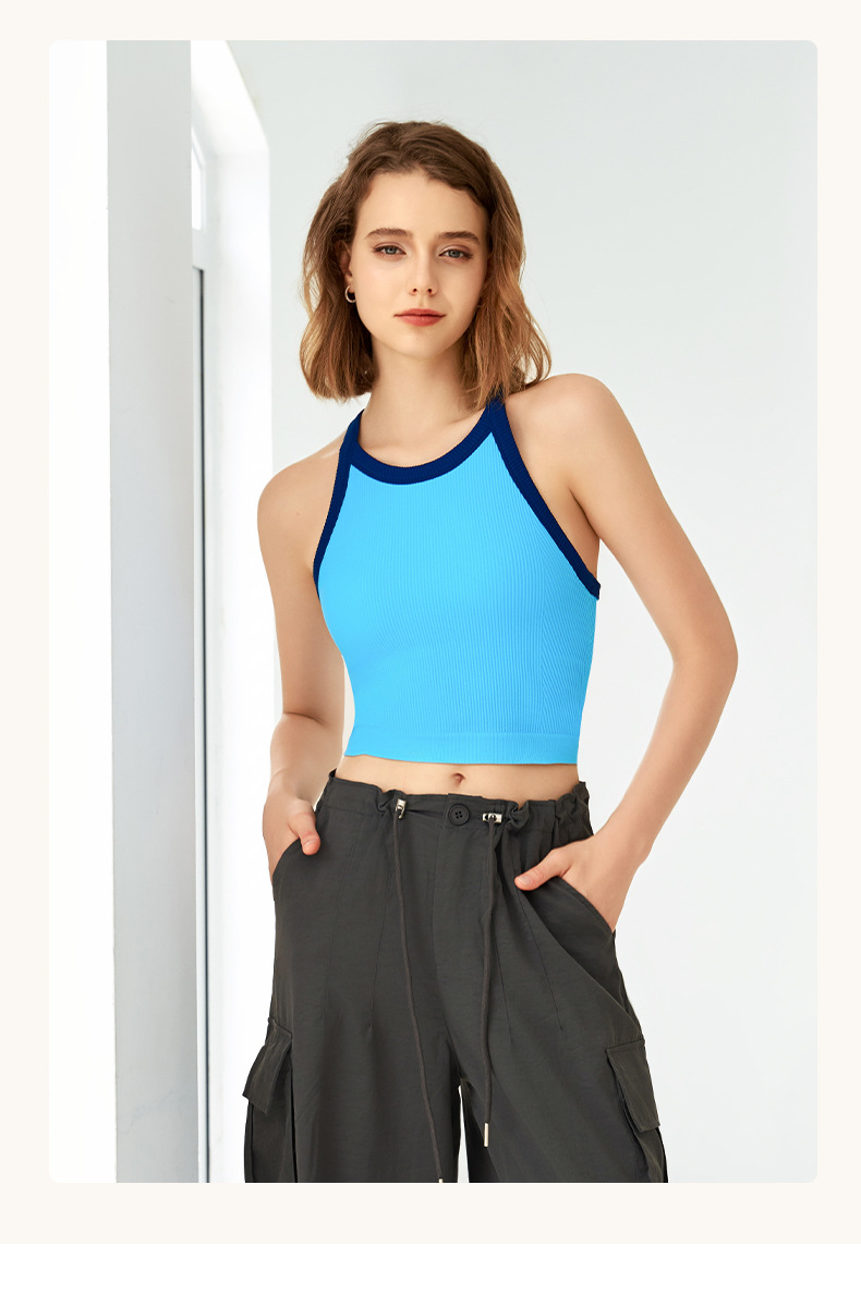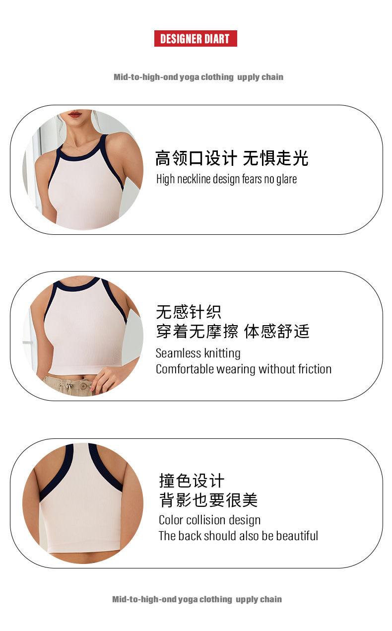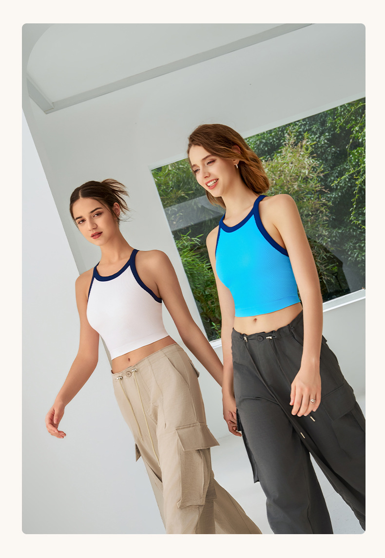 2025 봄과 여름 새로운 대비 색상 고탄성 스포츠 브래지어 여성 충격 방지 피트니스 브래지어 고정 컵 요가 조끼