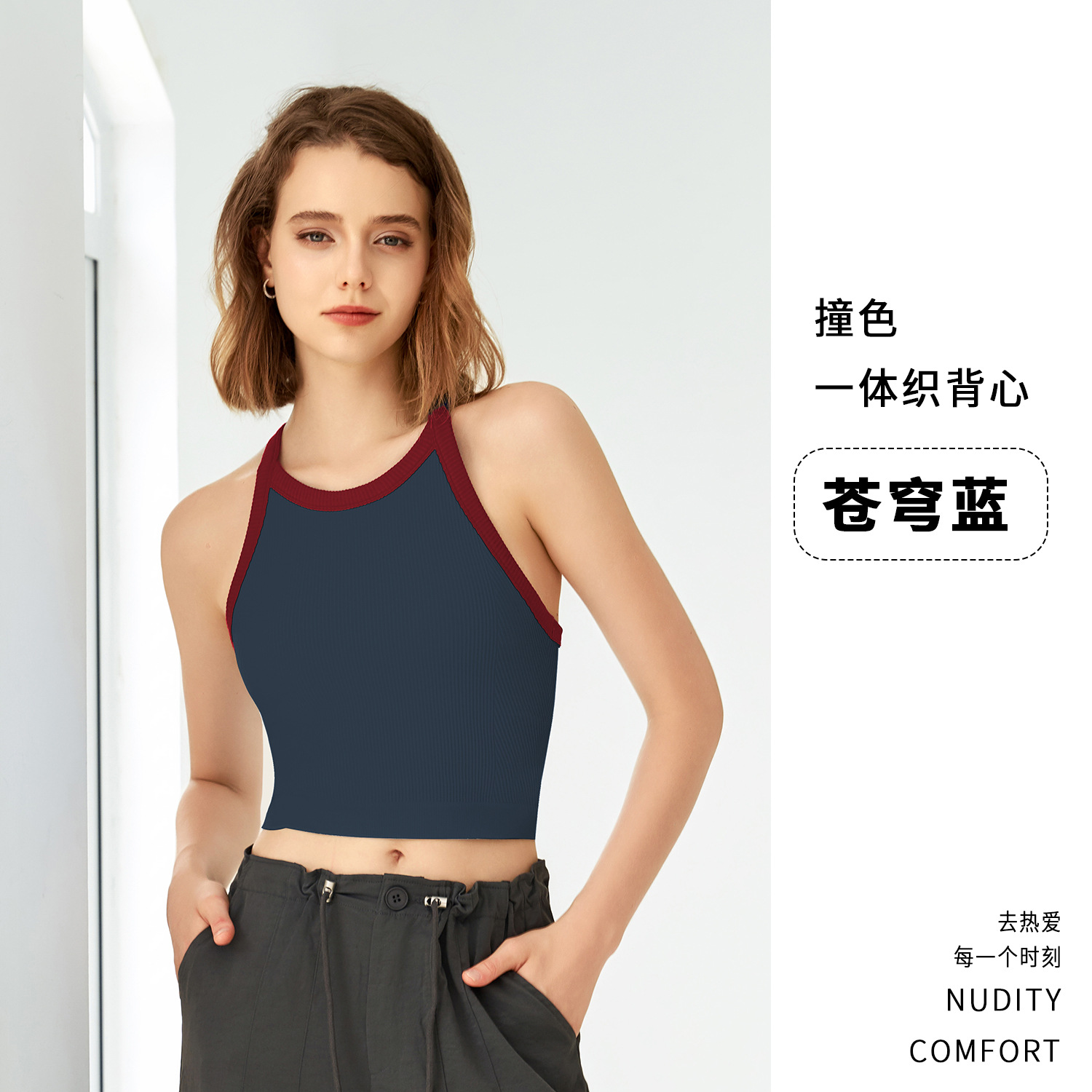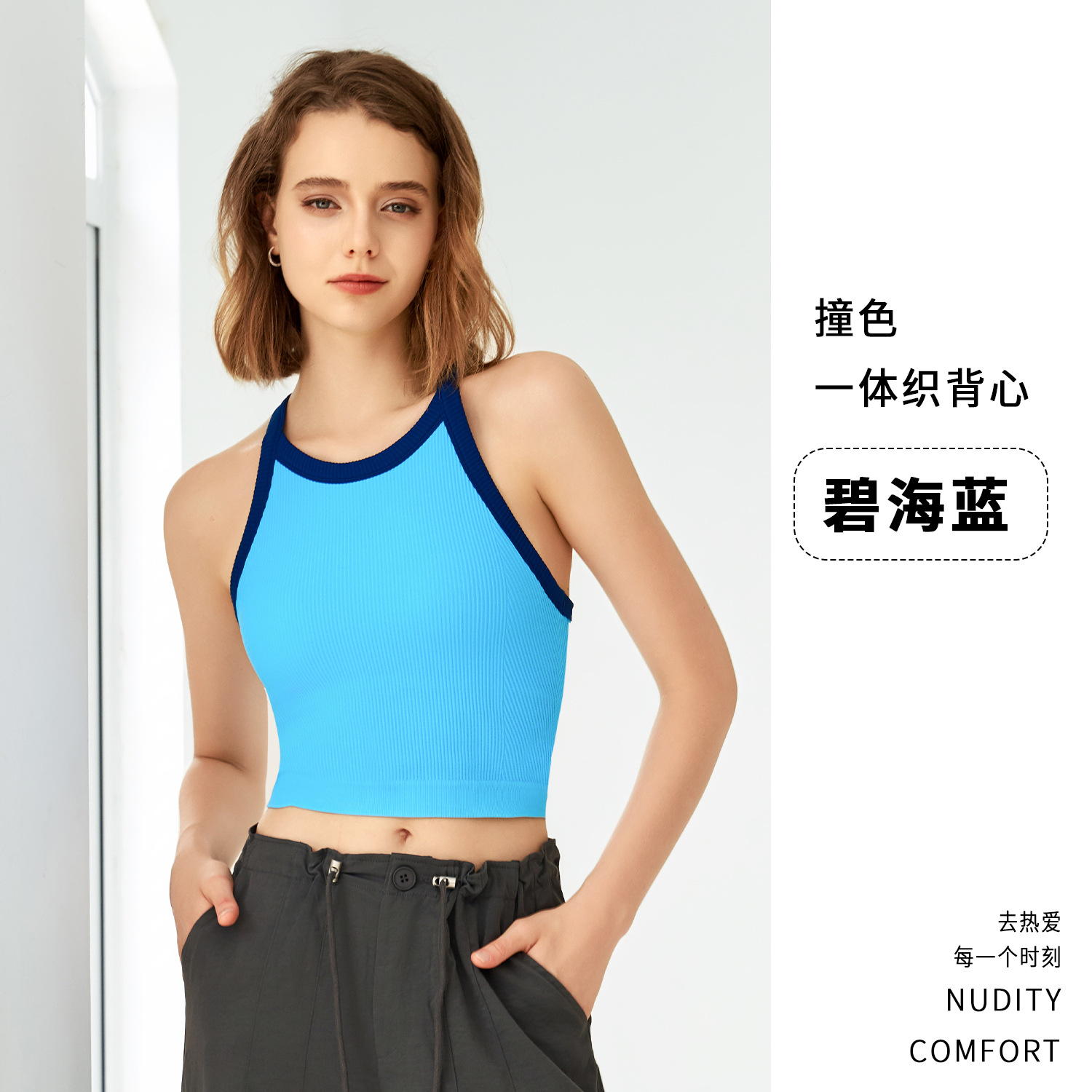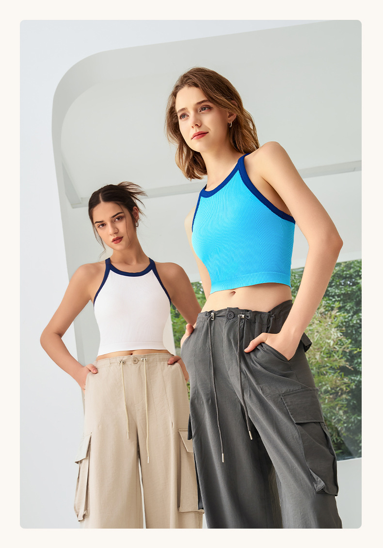 2025 봄과 여름 새로운 대비 색상 고탄성 스포츠 브래지어 여성 충격 방지 피트니스 브래지어 고정 컵 요가 조끼