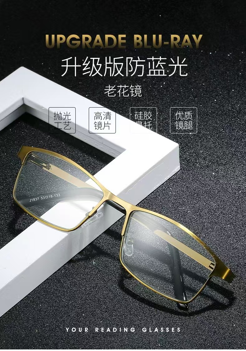 새로운 고급 청동 브러시 블루 라이트 독서 안경 중년 및 노인 패션 비즈니스 시계 휴대 전화 컴퓨터 눈 보호 안경스토어 가기