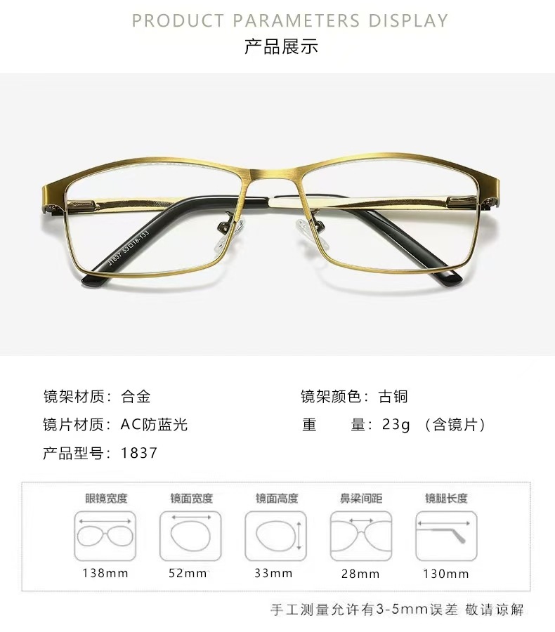 새로운 고급 청동 브러시 블루 라이트 독서 안경 중년 및 노인 패션 비즈니스 시계 휴대 전화 컴퓨터 눈 보호 안경