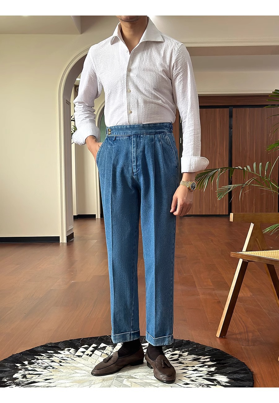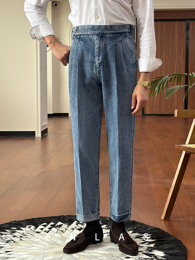 영국 하이 웨이스트 남성 매우 이탈리아 비즈니스 나폴리 청바지 펜던트 스트레이트 커드 바지스토어 가기