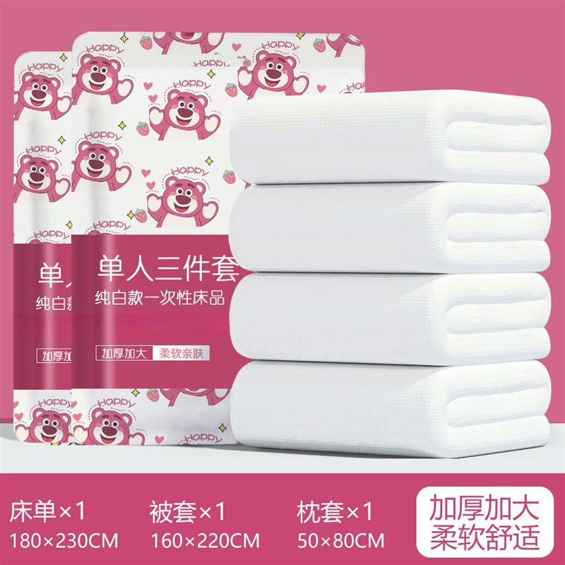침구 퀼트 케이스 베개 케이스 침대 시트 야외 여행 호텔 3 더블 목욕 수건 더러운 일회용 싱글 4 피스 세트 비즈니스 여행스토어 가기