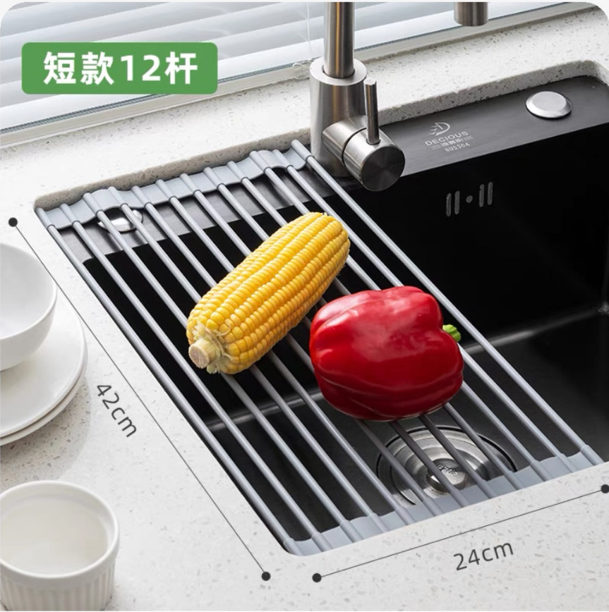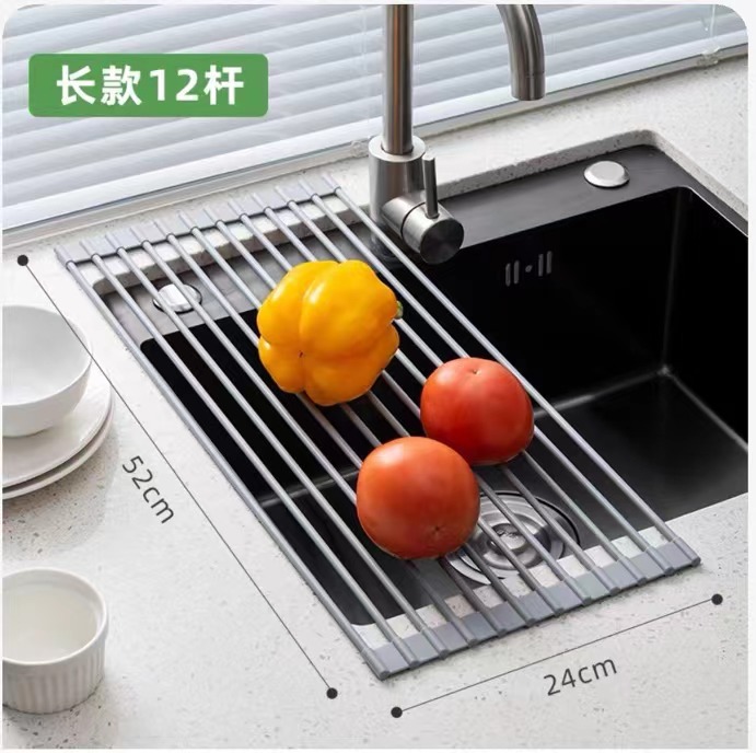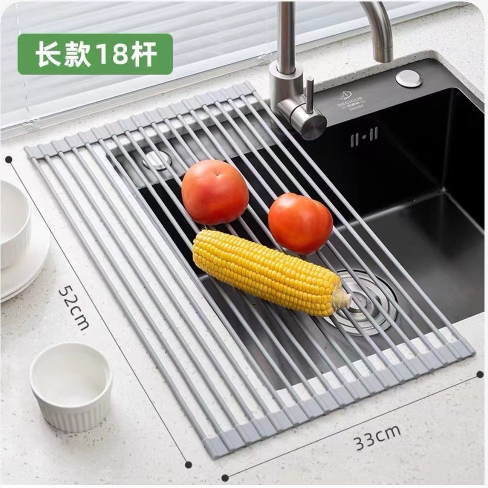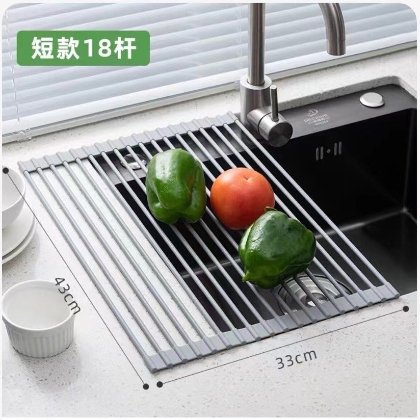 국경 간 실리콘 롤러 셔터 싱크 드레인 랙 주방 싱크대 과일 및 야채 배수 패드 접이식 배수 바구니스토어 가기