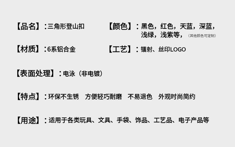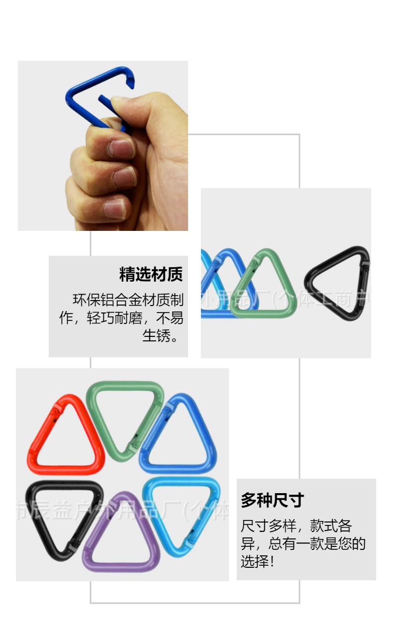 No.3 및 No.4 전기 영동 컬러 알루미늄 합금 삼각형 등산 버클 다기능 봄 장식 버클 장난감 주전자 매달린 버클