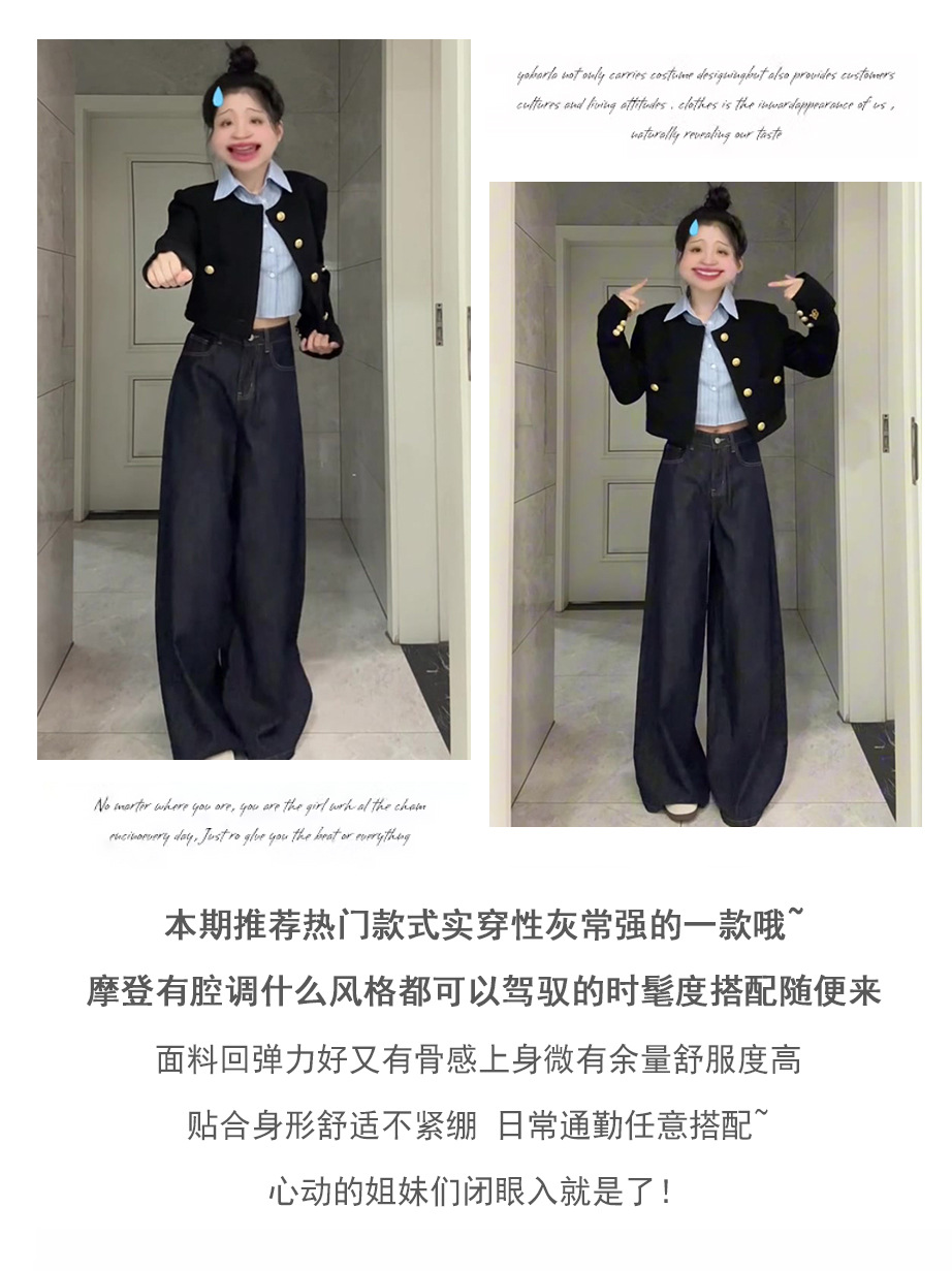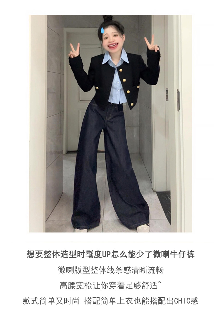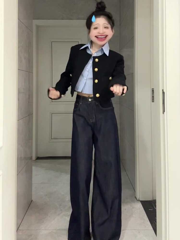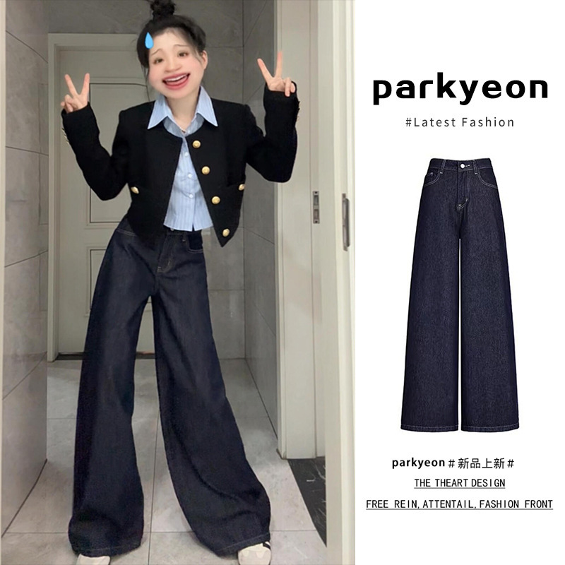 미국 스타일 게으르고 편안한 다크 블루 큰 뿔 청바지 여성의 가을과 겨울 높은 허리 딥 느슨한 넓은 다리 긴 바지