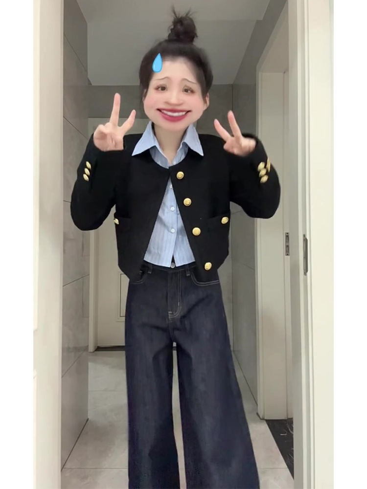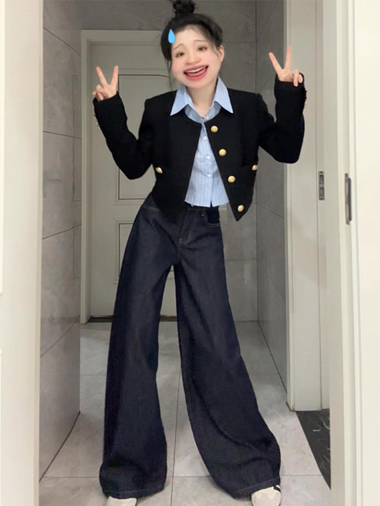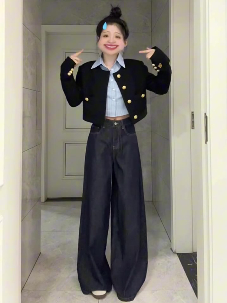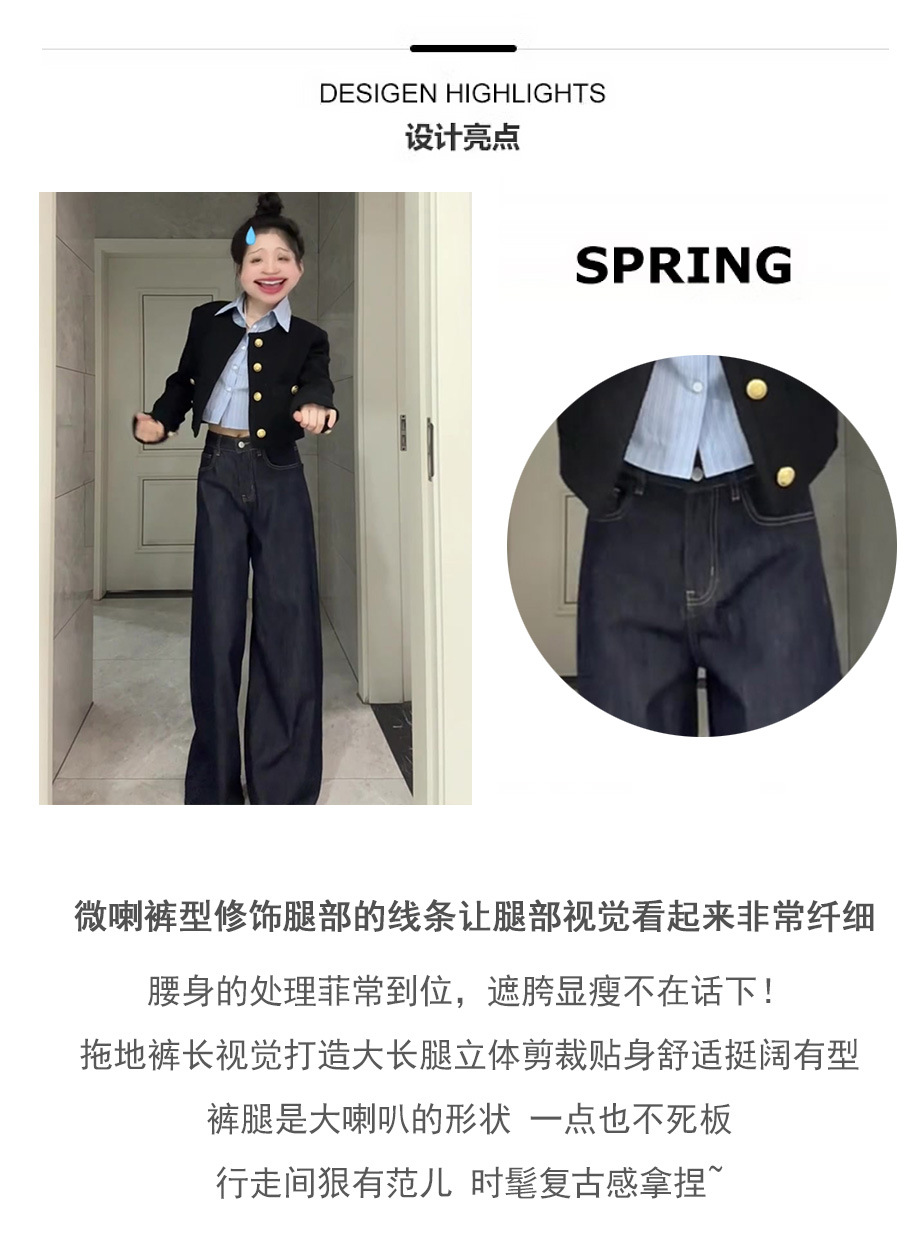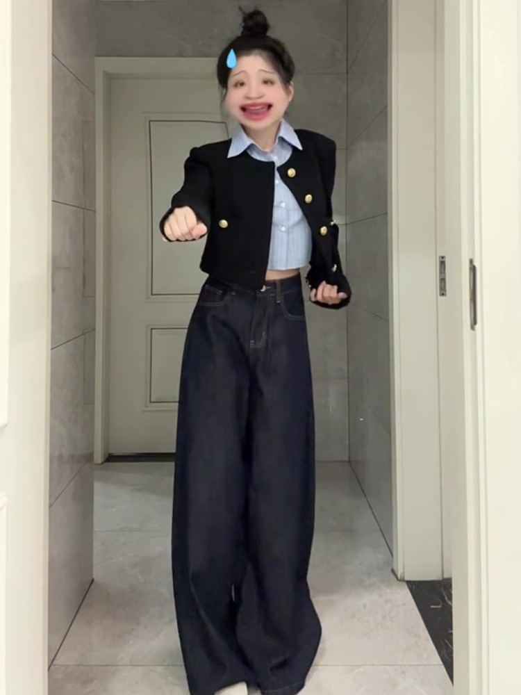 미국 스타일 게으르고 편안한 다크 블루 큰 뿔 청바지 여성의 가을과 겨울 높은 허리 딥 느슨한 넓은 다리 긴 바지
