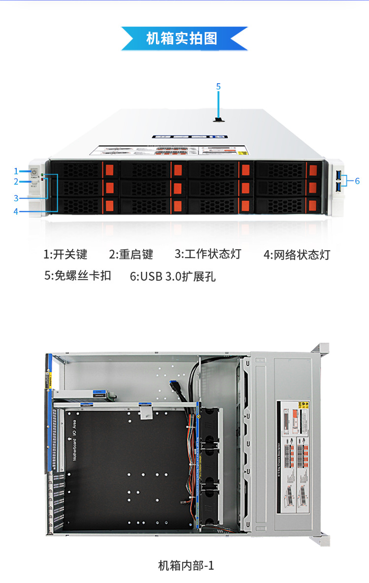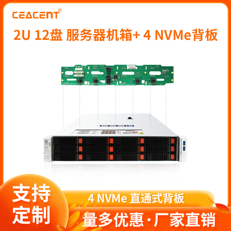2U CC3K12-12S04N 12베이 랙 마운트 섀시 4 NVMe+8 SAS/SATA 백플레인