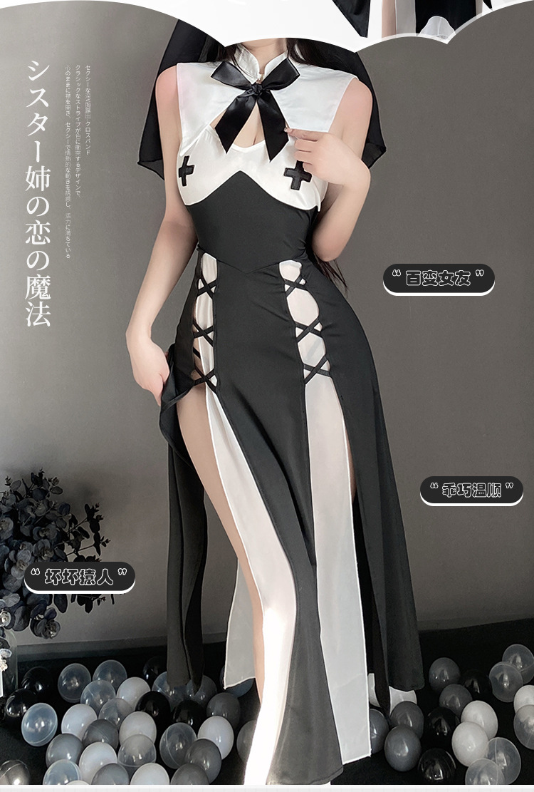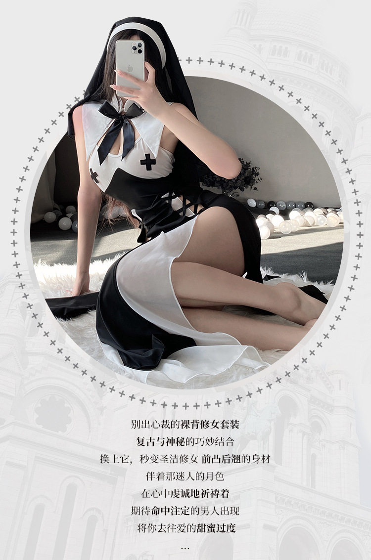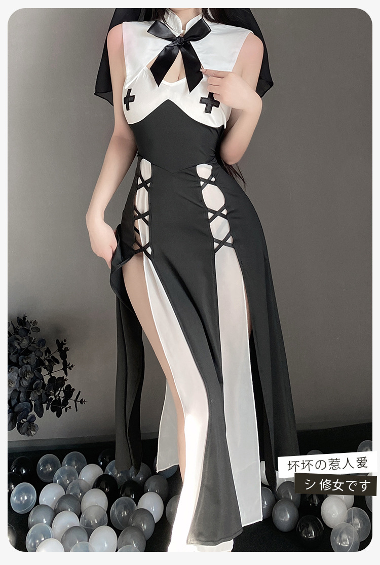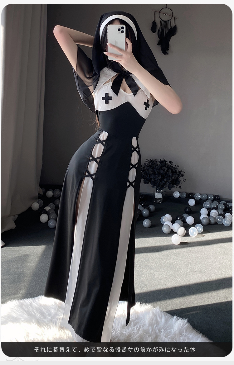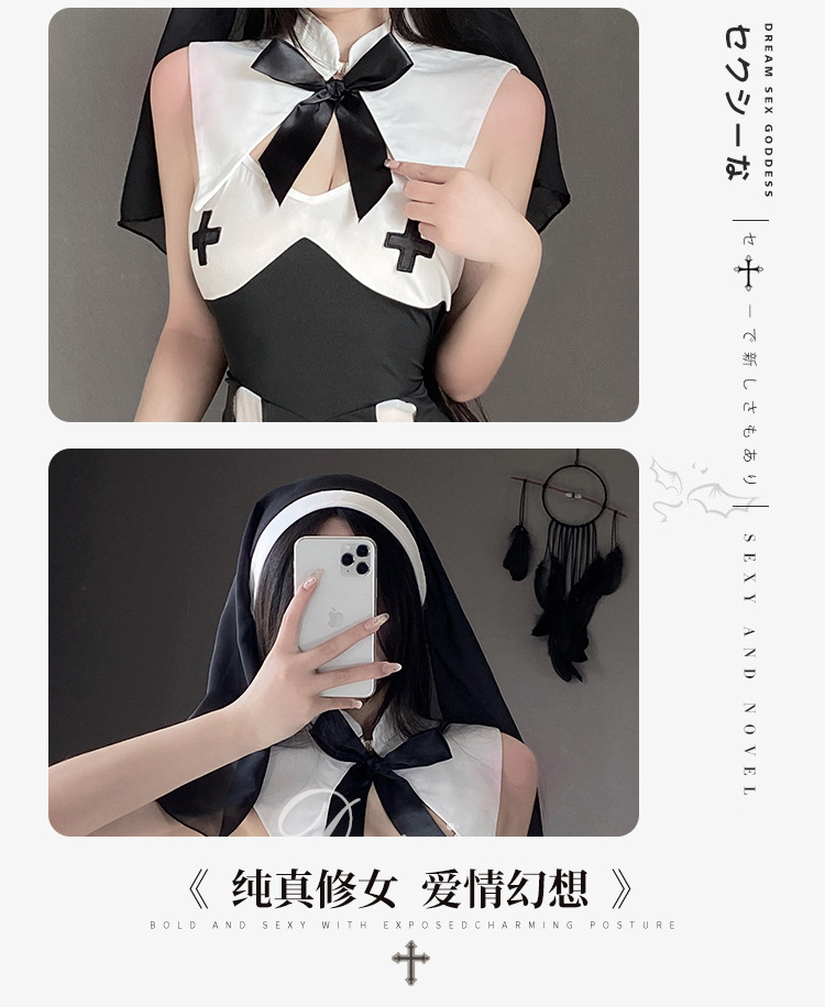 유혹 수녀 섹스 란제리 귀여운 제복 세트 cos 뜨거운 성인 섹스 순수한 욕망 잠옷 세트 머리스토어 가기