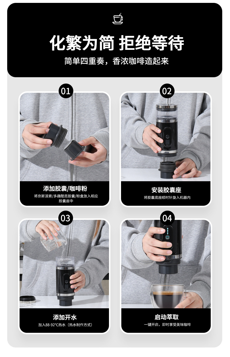 공장 사용자 정의 C01B 무선 가열 에스프레소 야외 휴대용 커피 머신 캡슐 커피 머신