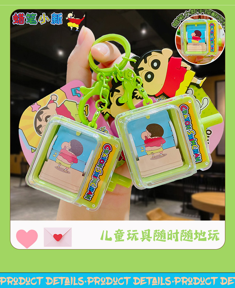 정품 만화 크레용 작은 새로운 플립 애니메이션 기계 키 체인 가방 인형 펜던트 커플 키 체인 작은 선물스토어 가기
