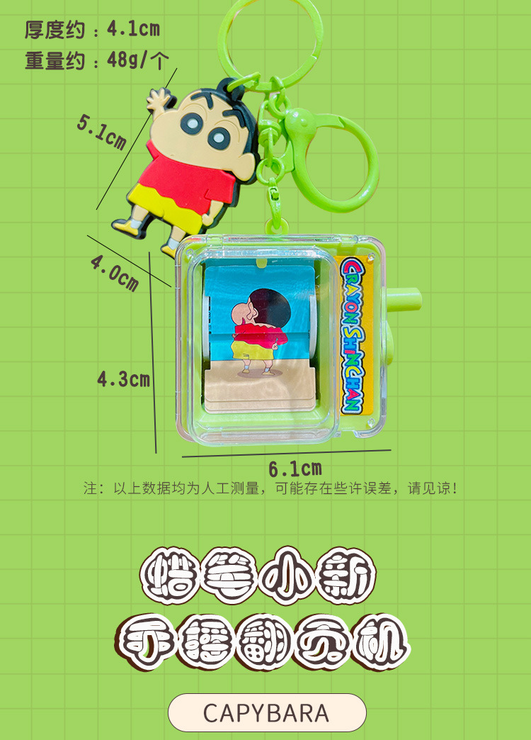 정품 만화 크레용 작은 새로운 플립 애니메이션 기계 키 체인 가방 인형 펜던트 커플 키 체인 작은 선물