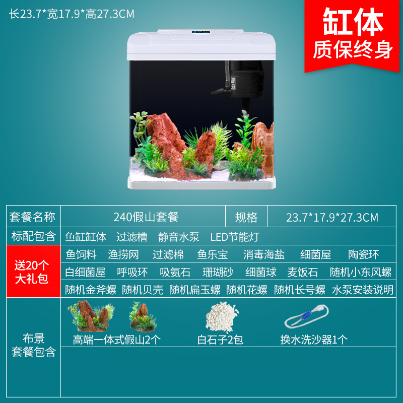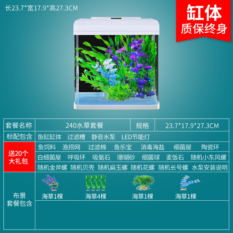 • 고화질 유리 240 표준 구성/무료 선물 패키지 20개 [워터 펌프 + 램프 + 산소 생성 + 필터 포함]