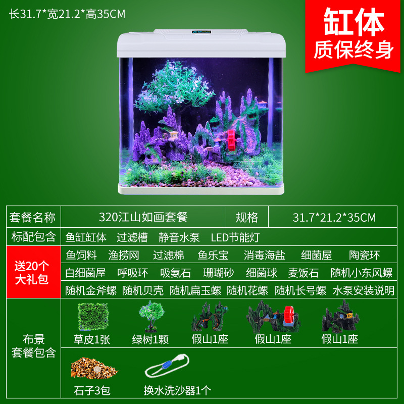 • 고화질 유리 320 Jiangshan/무료 20개 선물 패키지 [워터 펌프 + 램프 + 산소 생성 + 필터 포함]