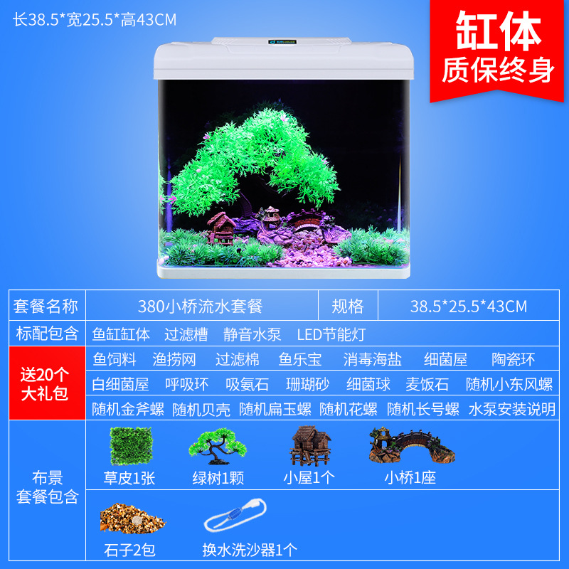• 고화질 유리 380 표준 구성/무료 선물 패키지 20개 [워터 펌프 + 램프 + 산소 생성 + 필터 포함]