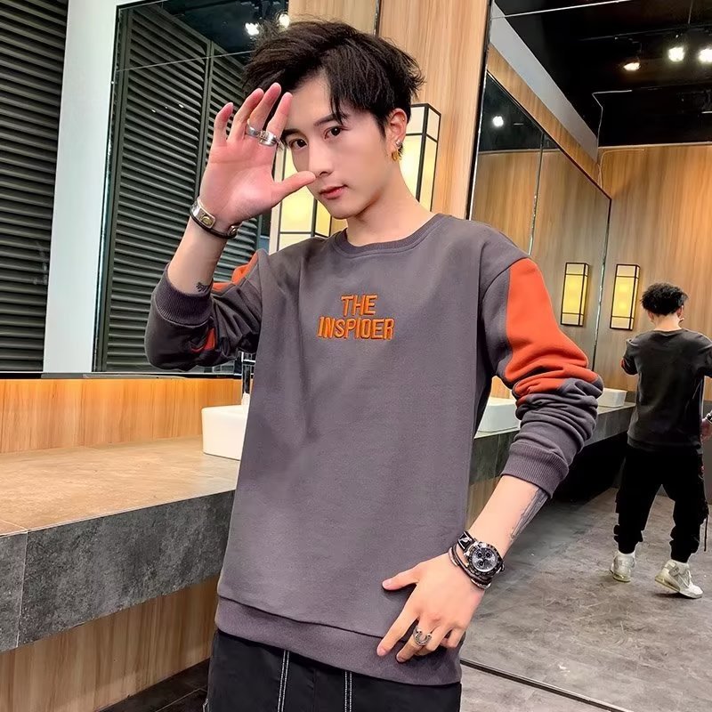 가을과 겨울 남성 기모 두꺼운 크루 넥 스웨터 긴팔 티셔츠 트렌드 느슨한 남성용 겉옷 도매스토어 가기