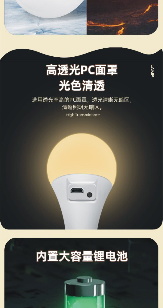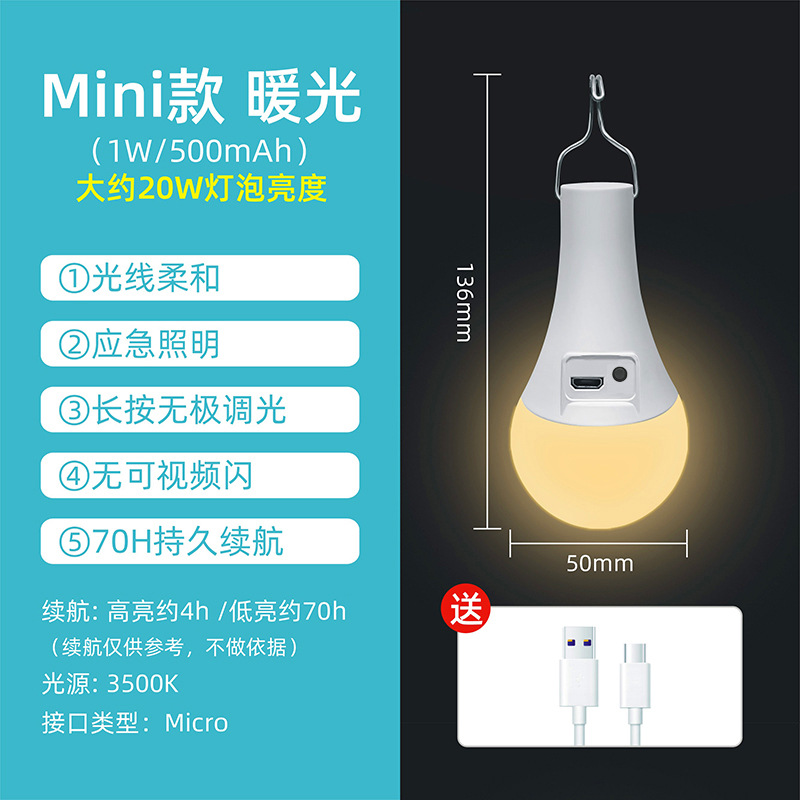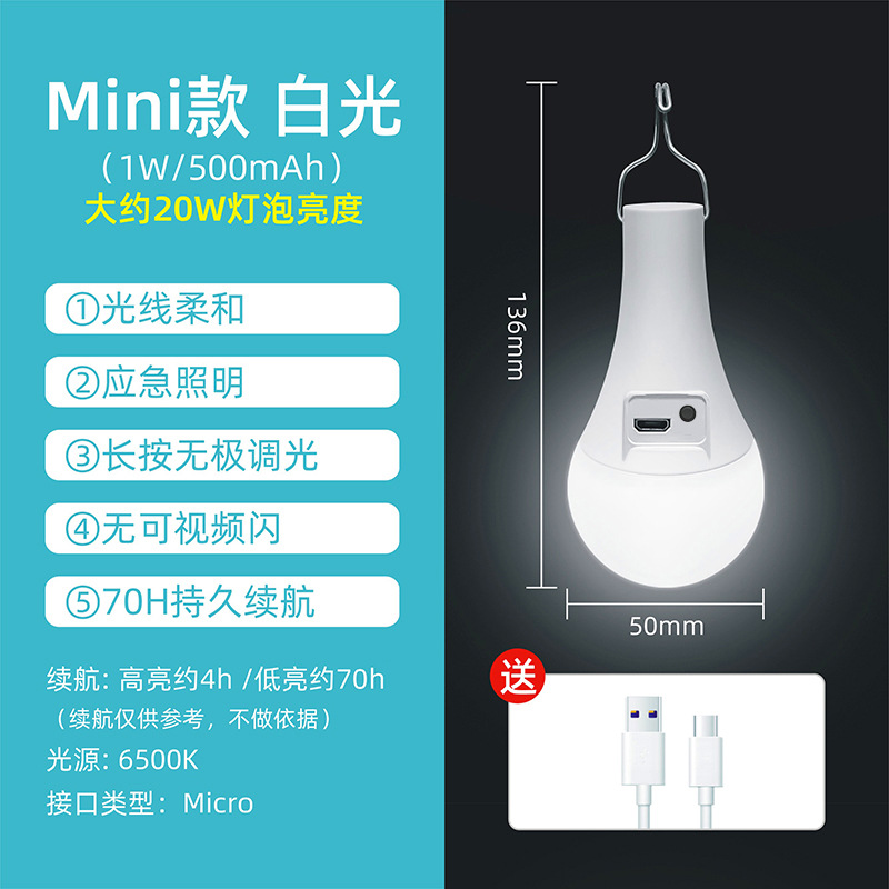 USB 충전식 led 전구 정전 비상 USB 모바일 슈퍼 밝은 야외 야시장 매점 화장실 캠핑 텐트
