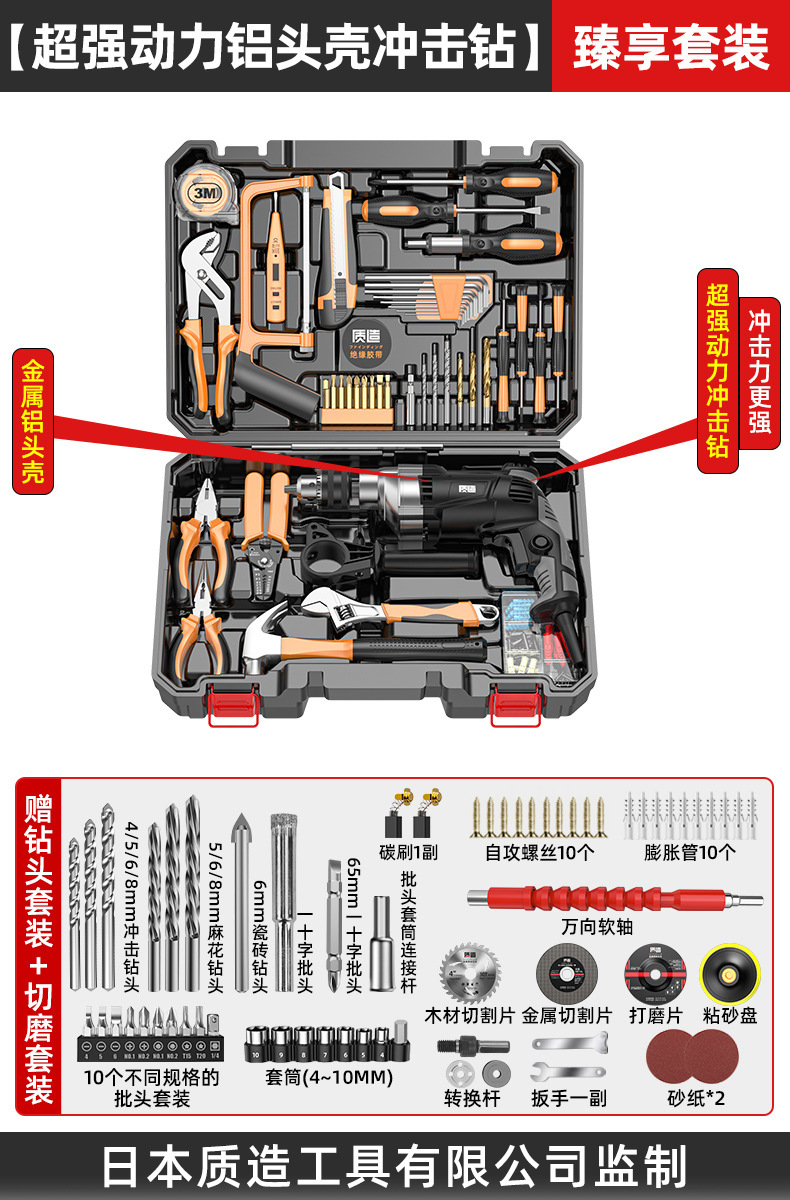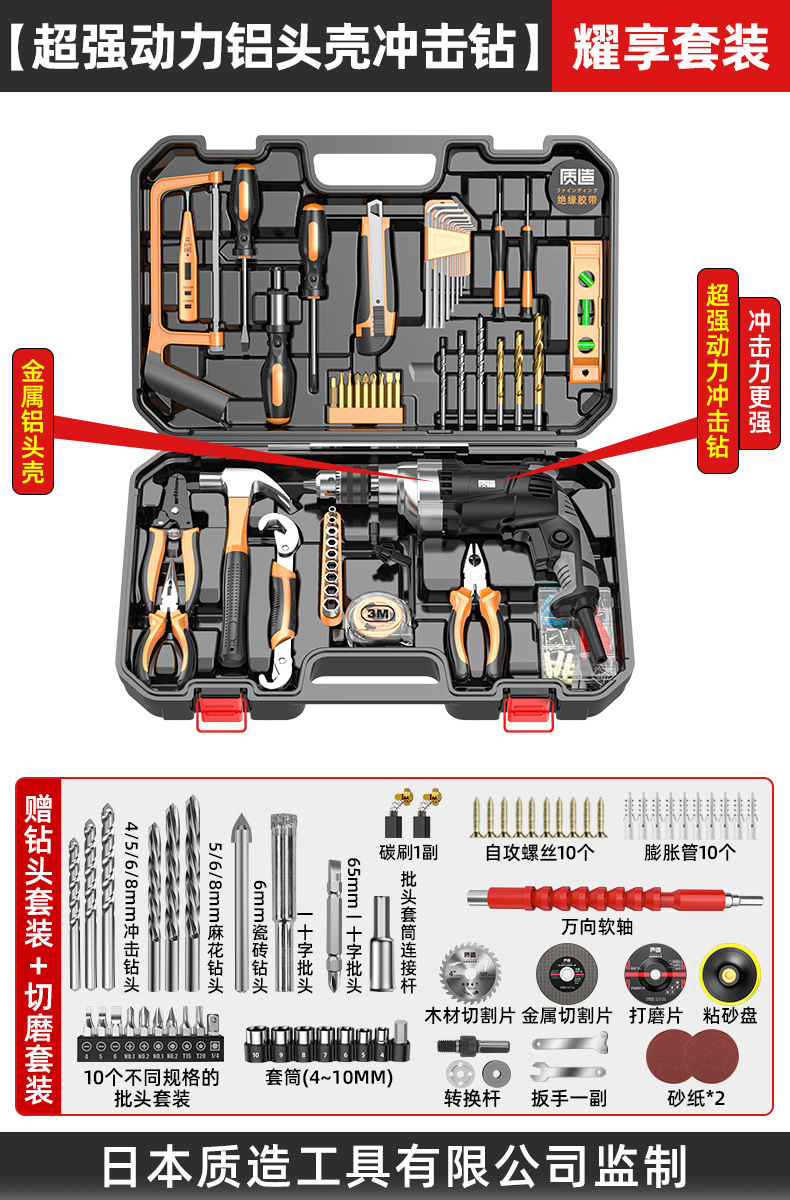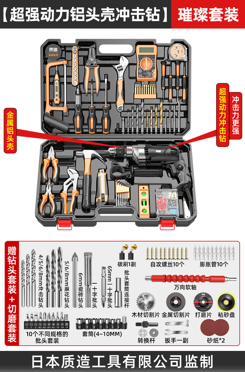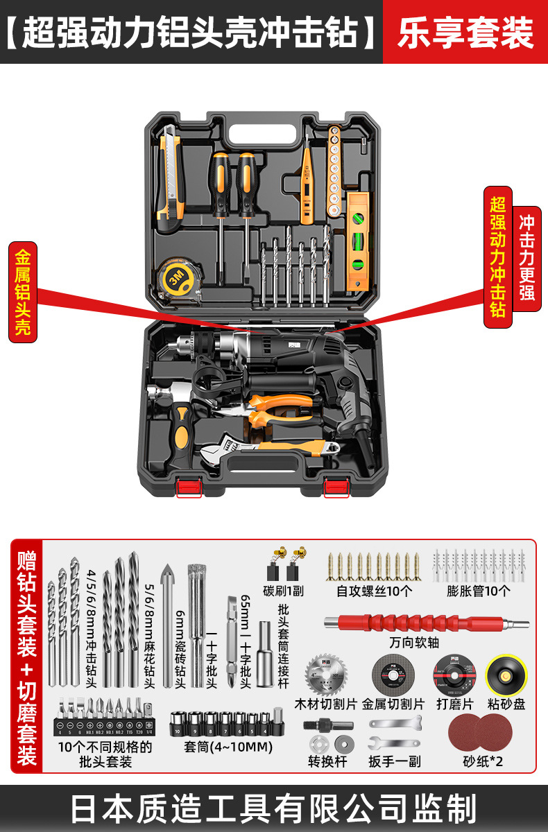 • [초강력 알루미늄 헤드 쉘 임팩트 드릴] Yuexiang 세트 + 무료 절단 및 연삭 세트 + 무료 드릴 비트 세트