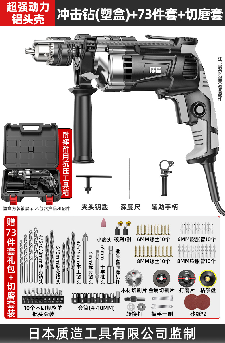 • [초강력 알루미늄 헤드 쉘] 임팩트 드릴(플라스틱 박스) + 73개 세트 + 커팅 및 그라인딩 세트