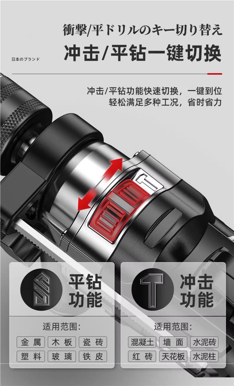 일본 품질 충격 드릴 가정용 다기능 손 전기 드릴 220V 손 총 드릴 전기 스크루 드라이버 작은 전기 해머