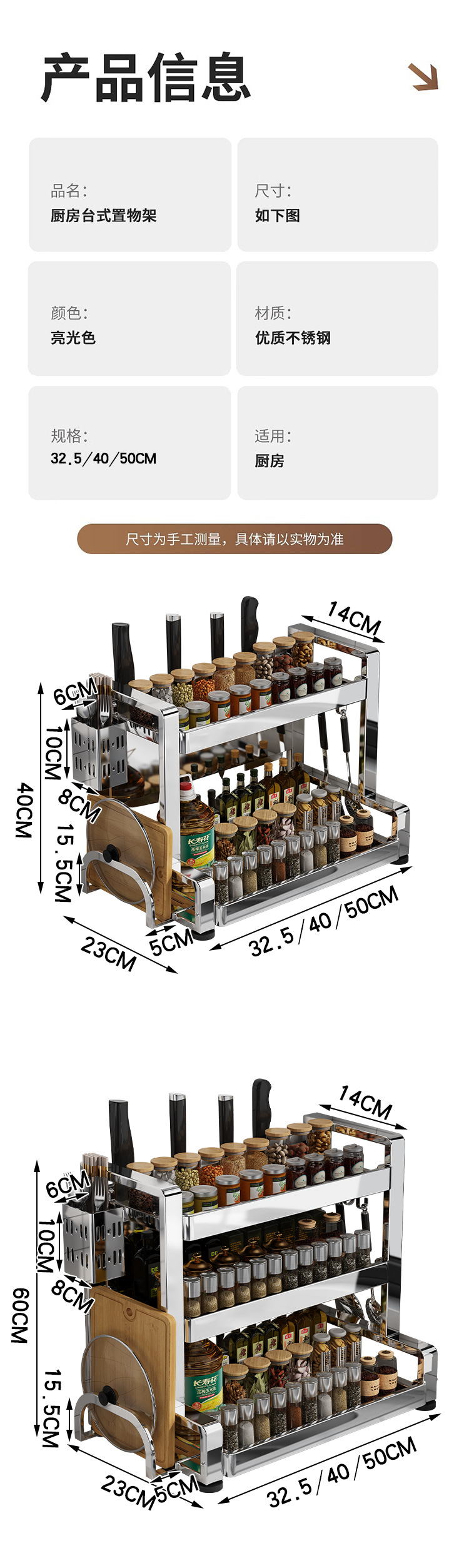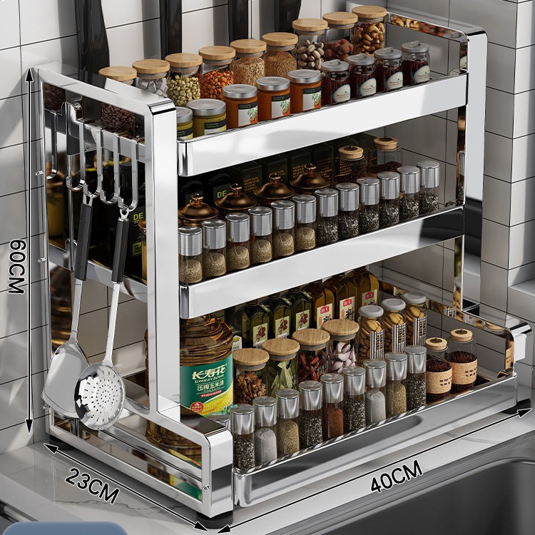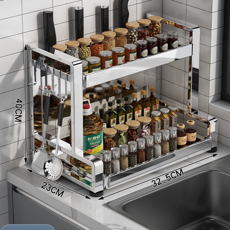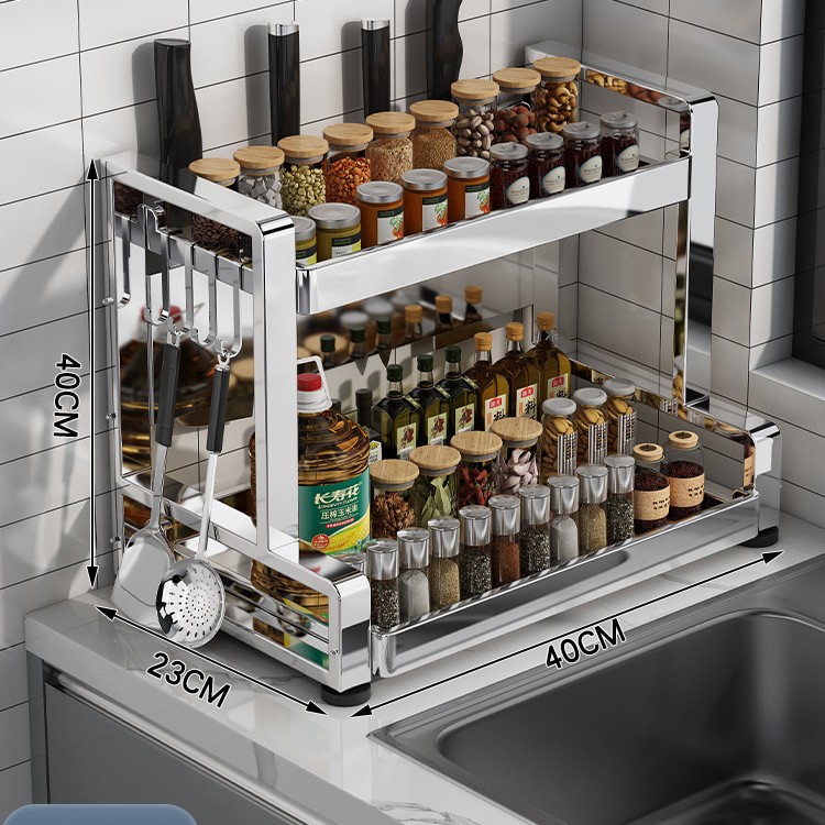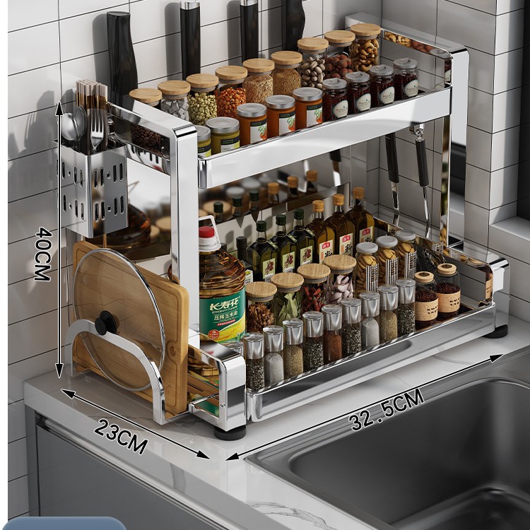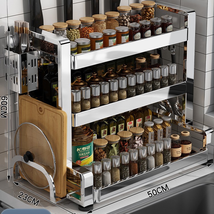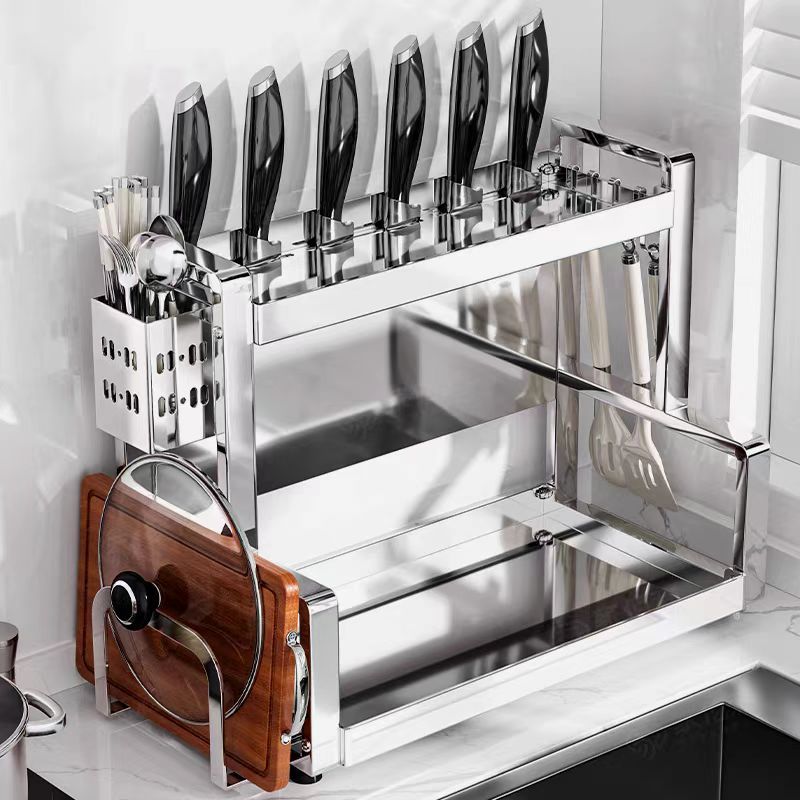 다층 두꺼운 스테인레스 스틸 주방 랙 다기능 나이프 랙 탁상용 양념 냄비 보관 랙