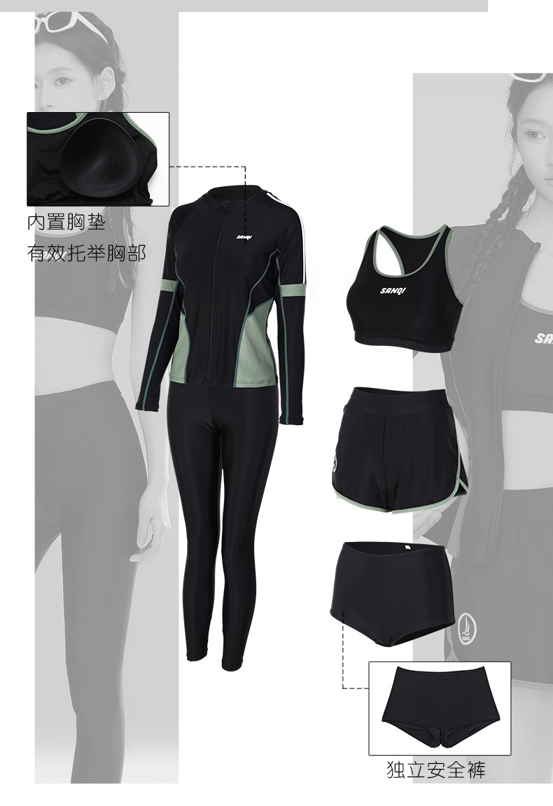 Sanqi 긴 소매 바지 분할 수영복 여성 플러스 사이즈 세트 2024 새로운 서핑 세트 해파리 세트 선 스크린 수영복스토어 가기