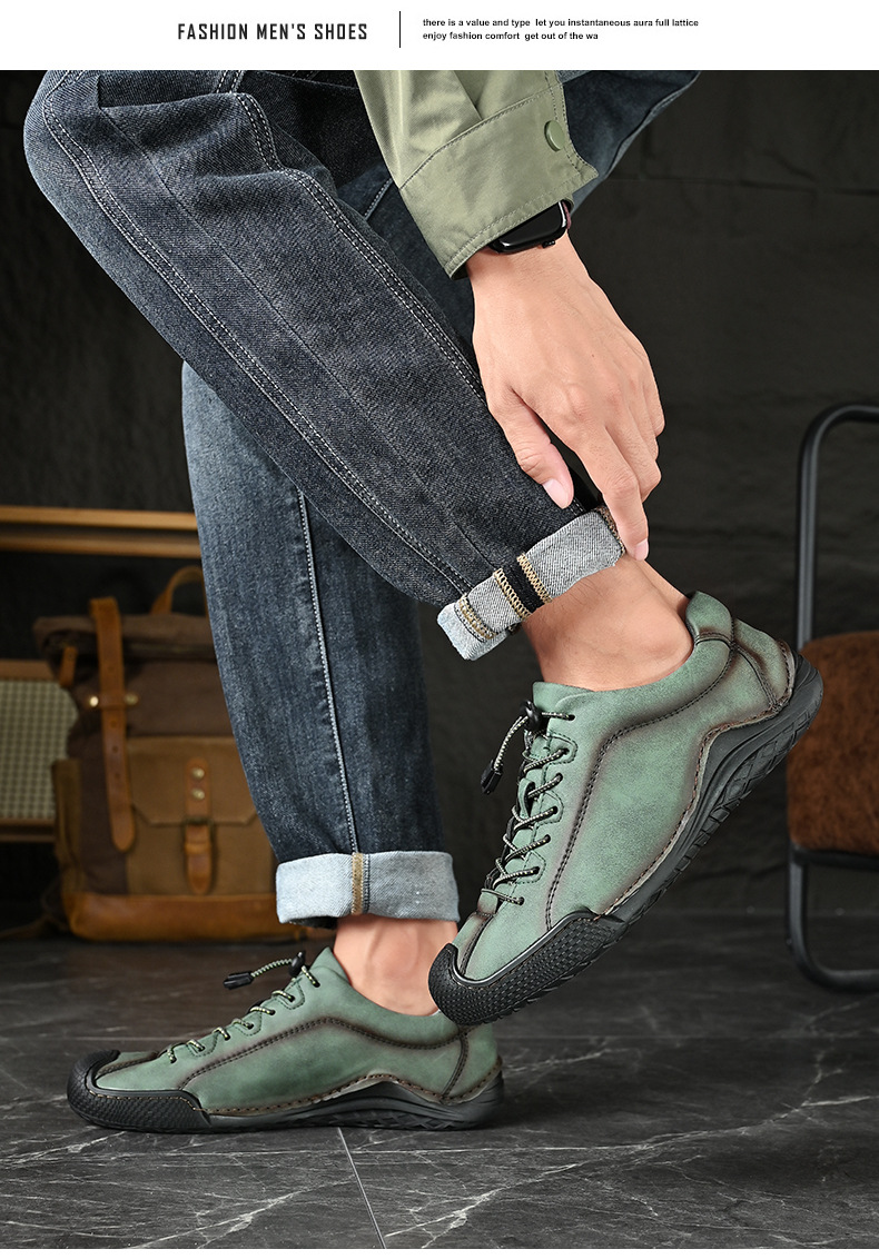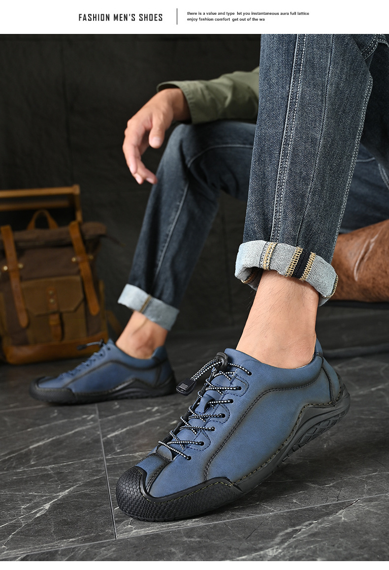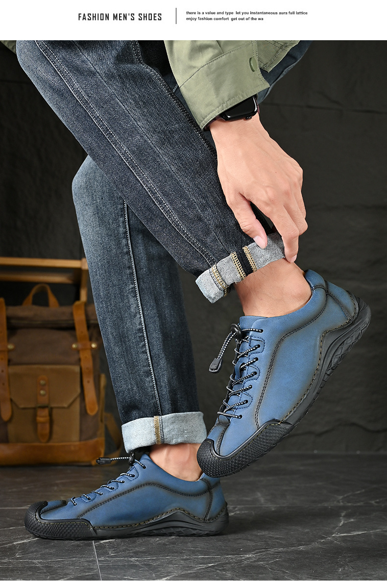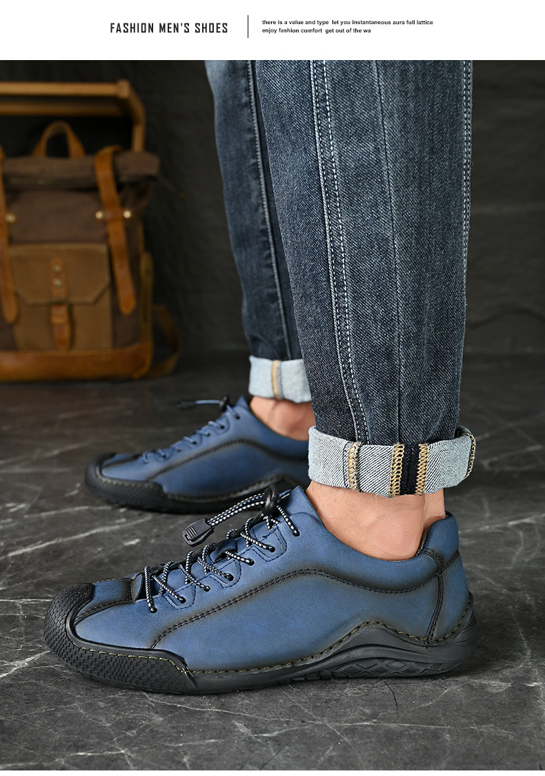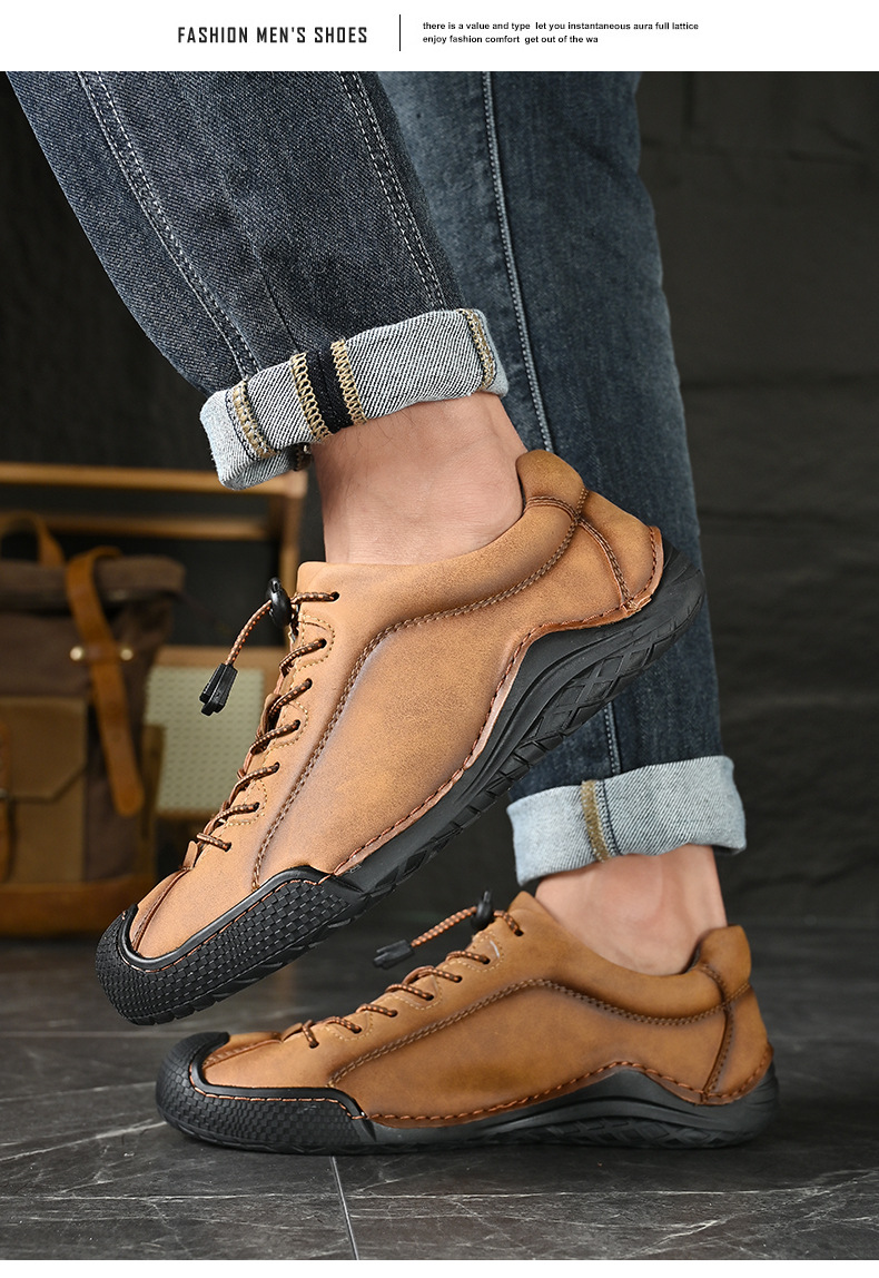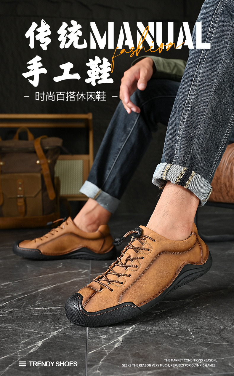 남성용 신발 사계절 새로운 빛 48 플러스 사이즈 캐주얼 가죽 신발 레트로 올매치 미끄럼 방지 트렌디 슈즈 로우 탑 슈즈 핸드 스티치스토어 가기