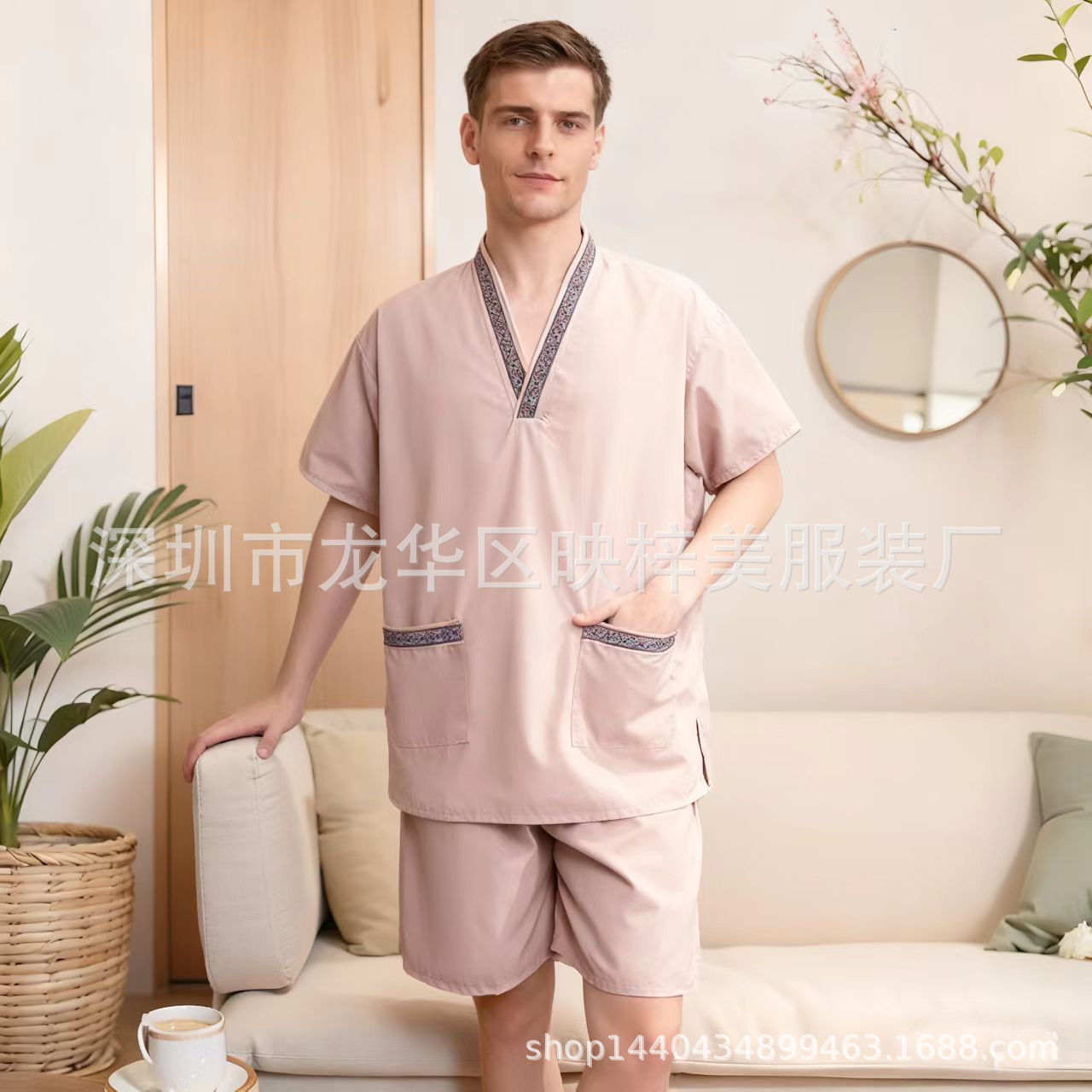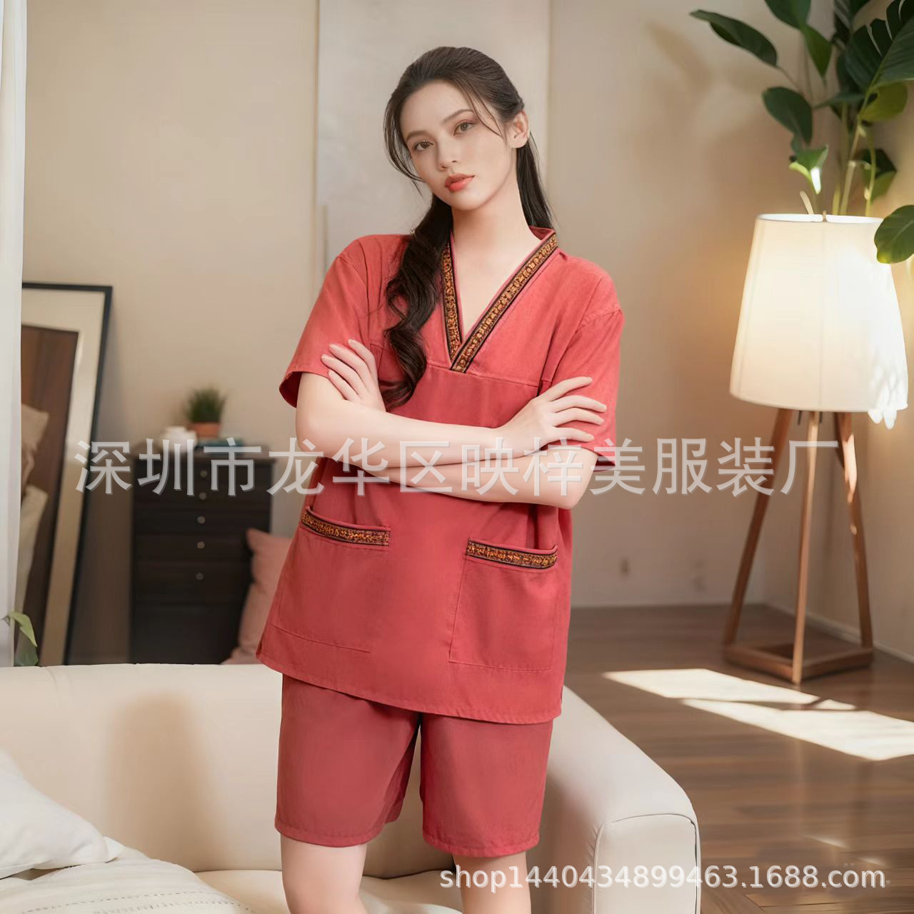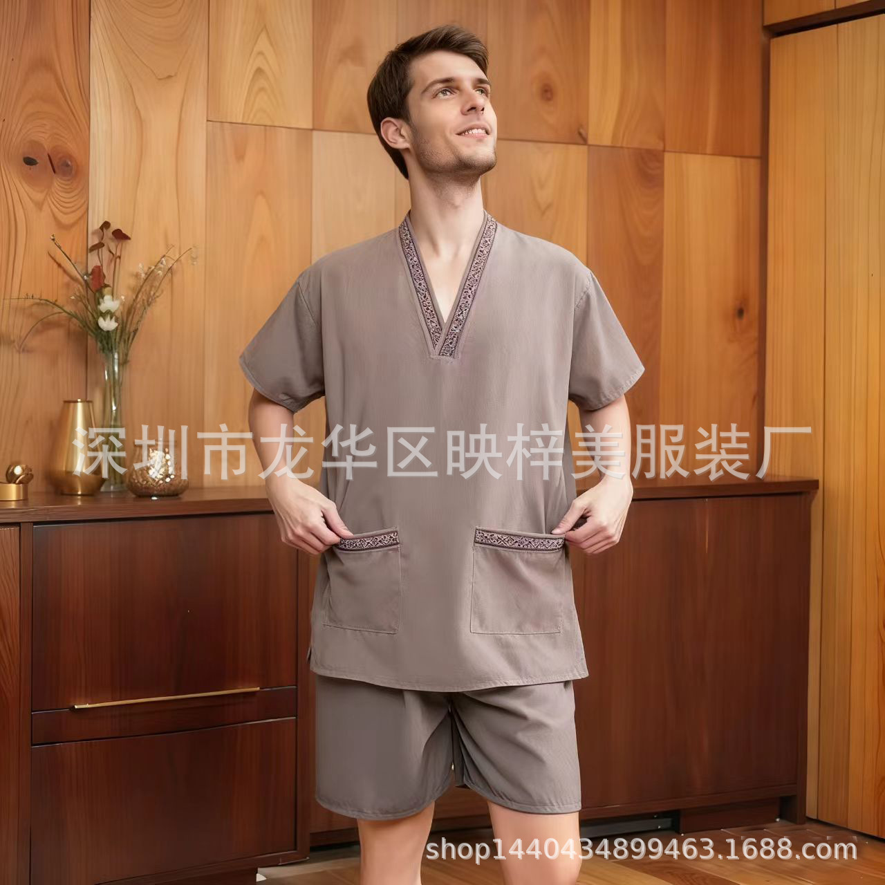 공 대마 패브릭 웨빙 칼라 새로운 땀 김이 나는 의류 제조업체 직접 배치 사우나 의류 발 마사지 목욕 가운 스타일 옵션스토어 가기