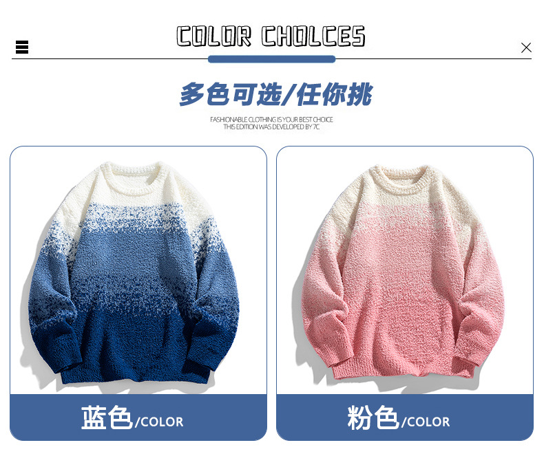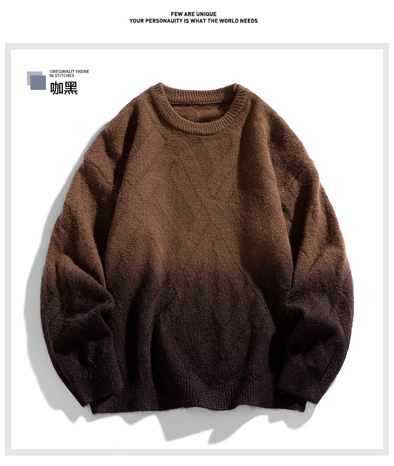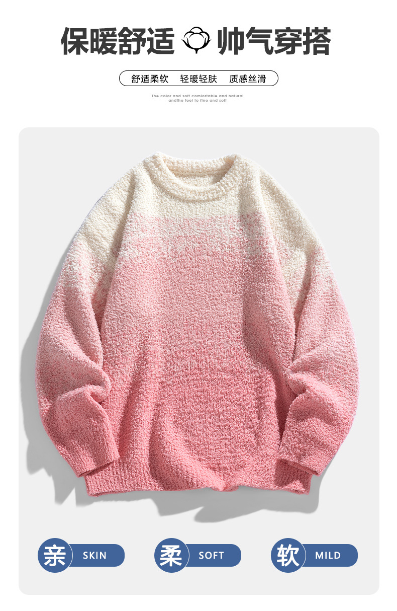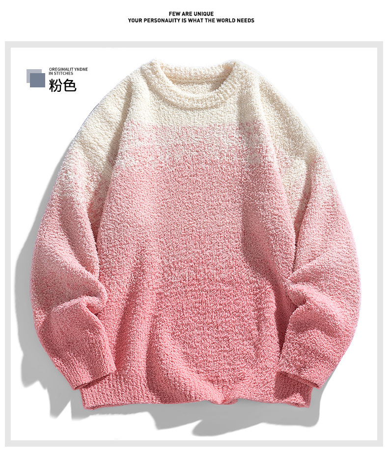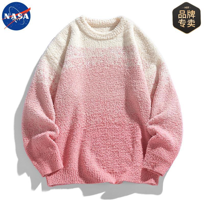 NASA 브랜드 공동 브랜드 그라데이션 라운드넥 스웨터 남성용 가을 겨울 배색 커플용 기본 니트웨어 루즈핏