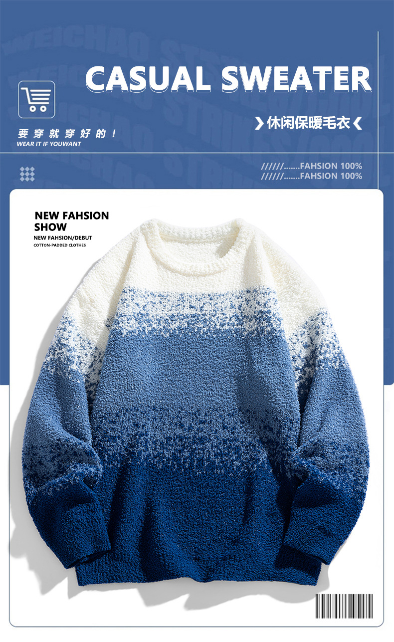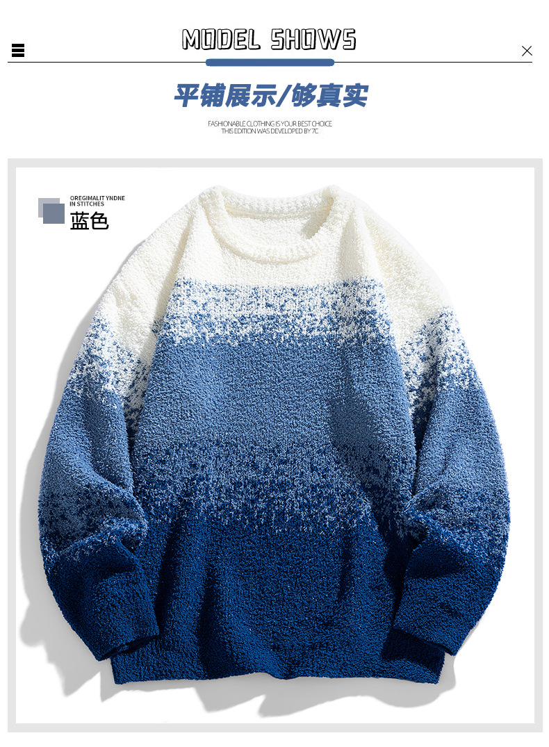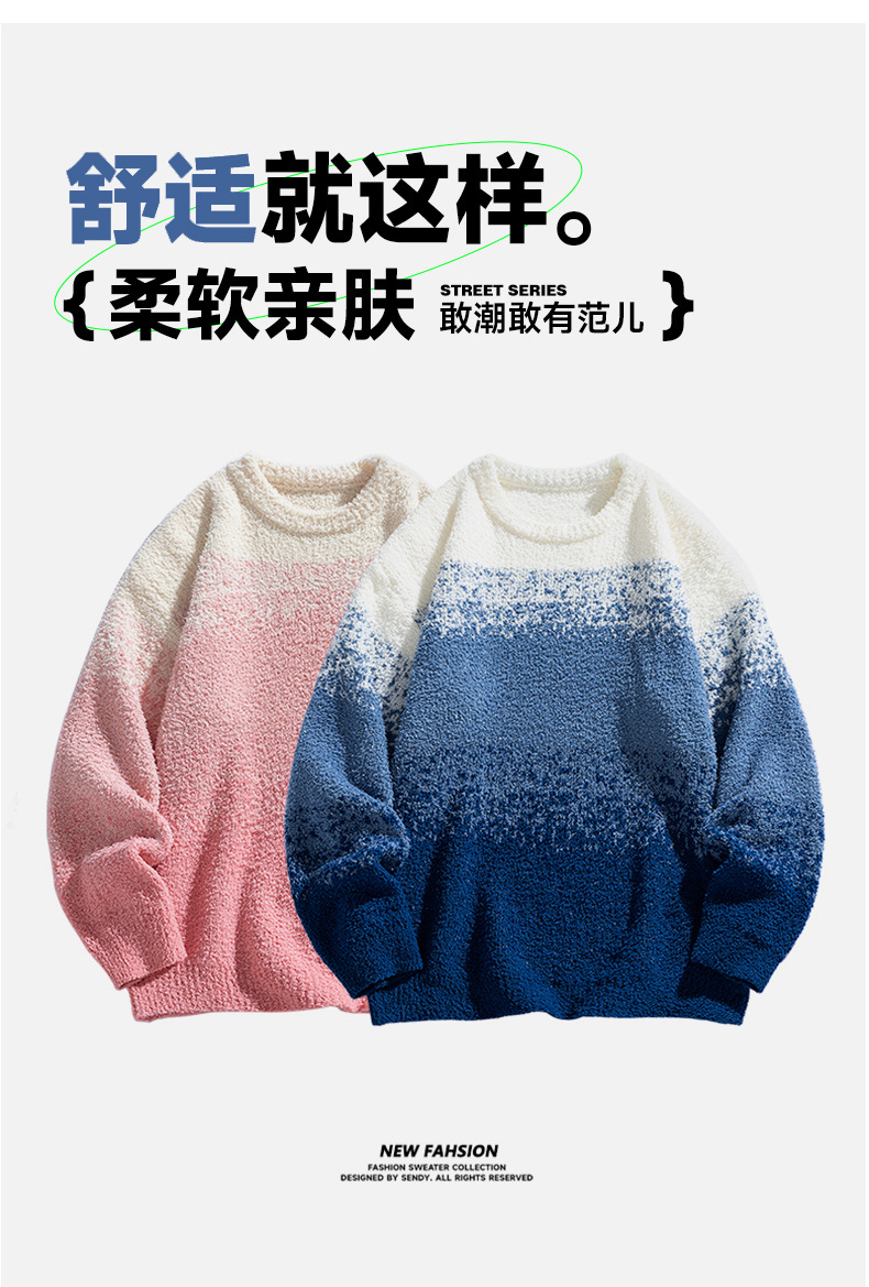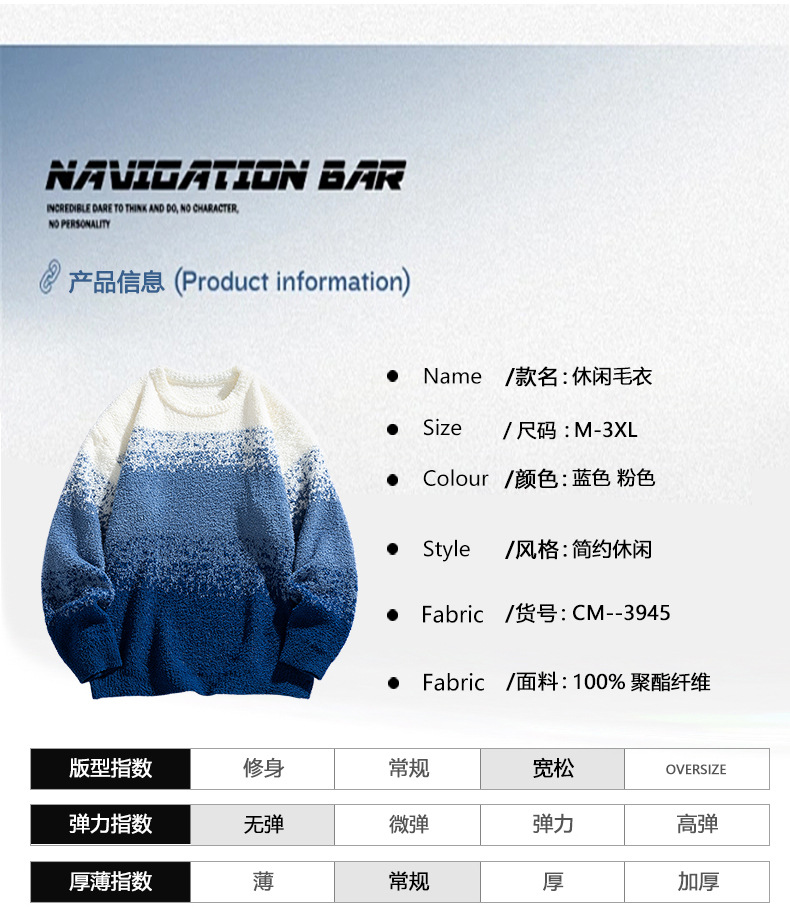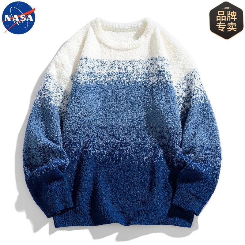 NASA 브랜드 공동 브랜드 그라데이션 라운드넥 스웨터 남성용 가을 겨울 배색 커플용 기본 니트웨어 루즈핏스토어 가기