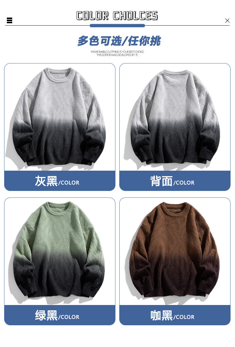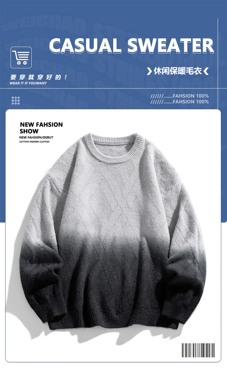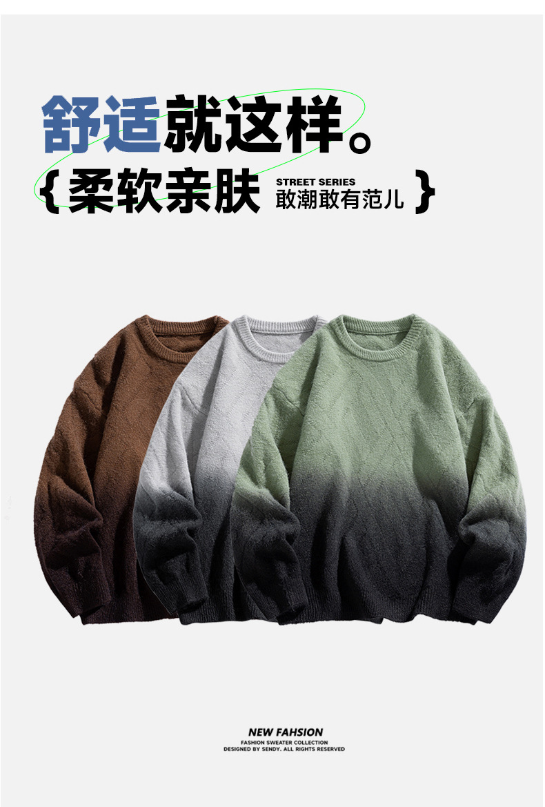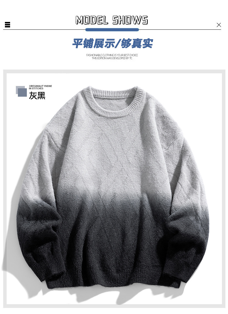 NASA 브랜드 공동 브랜드 그라데이션 라운드넥 스웨터 남성용 가을 겨울 배색 커플용 기본 니트웨어 루즈핏스토어 가기