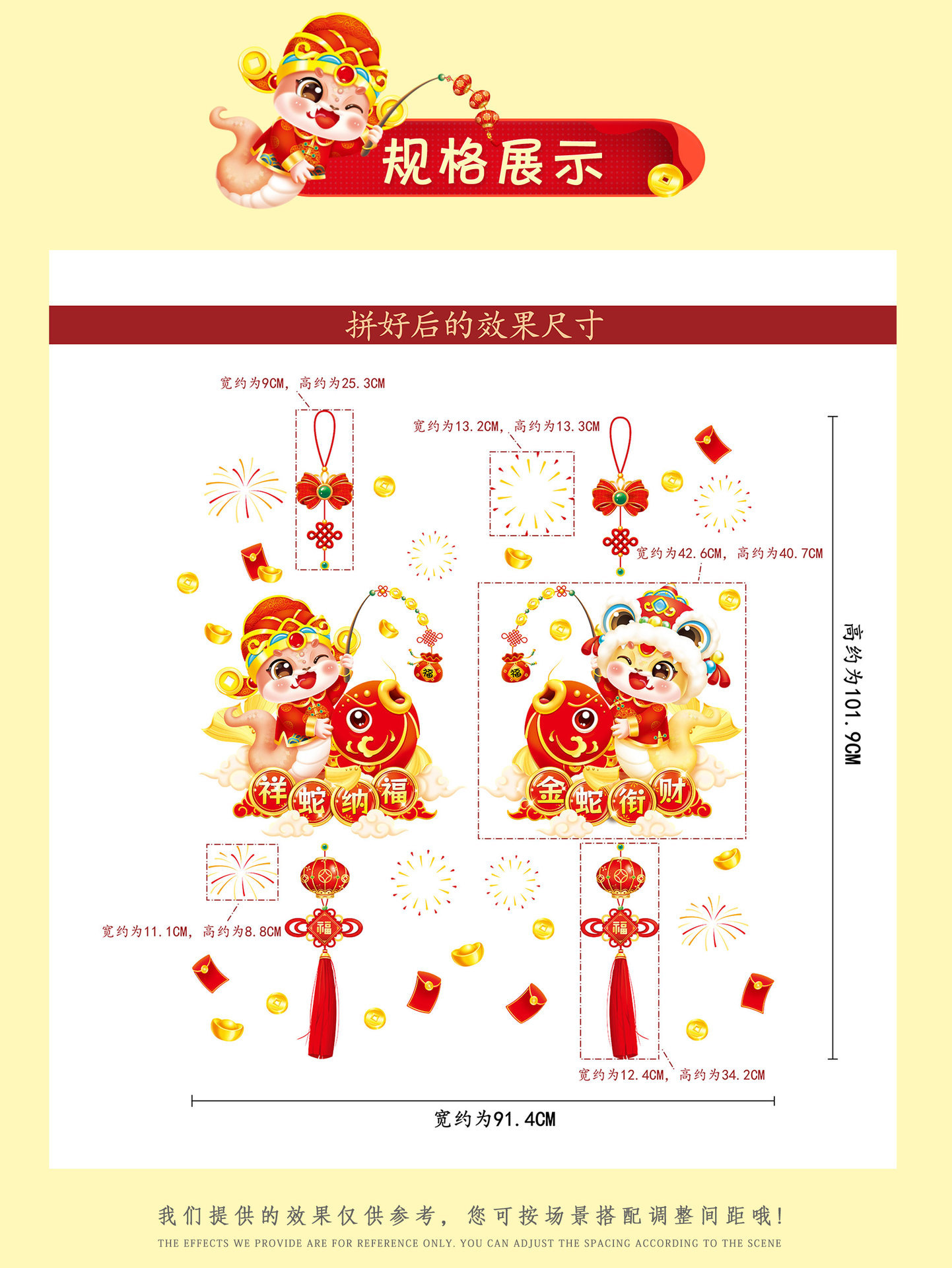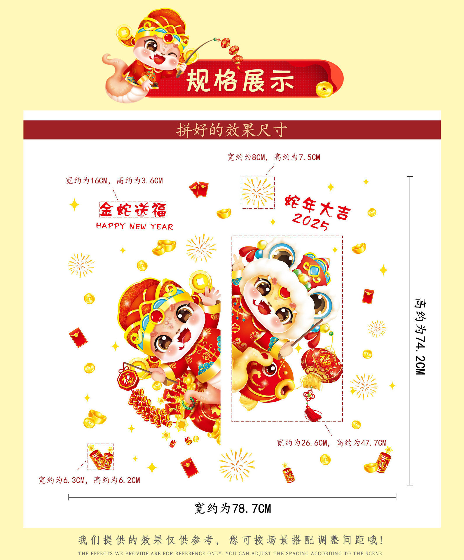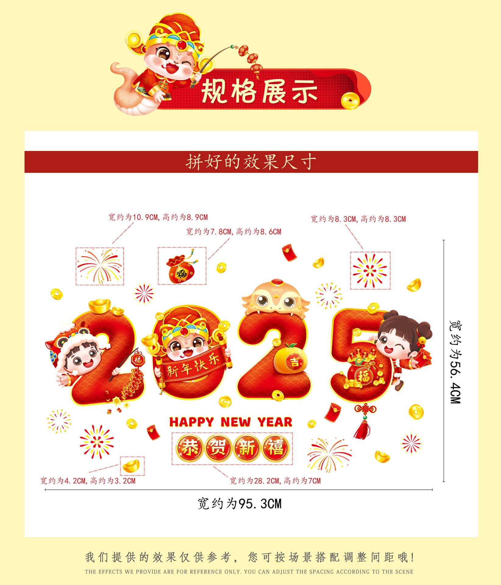 2025 년 뱀 새 봄 축제 장식 정전기 스티커 새해 창 유리 도어 및 창 스티커 축제 새해 준비