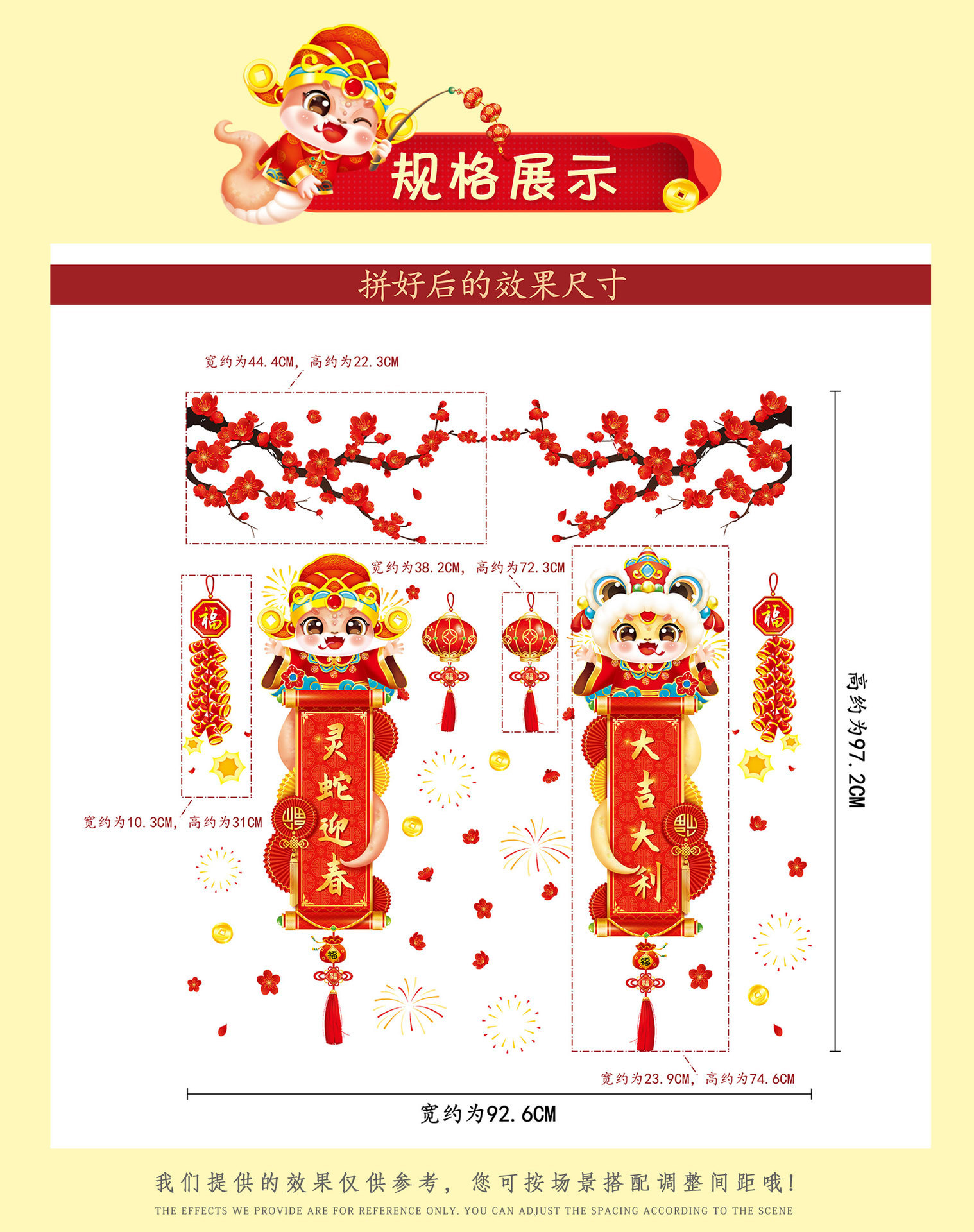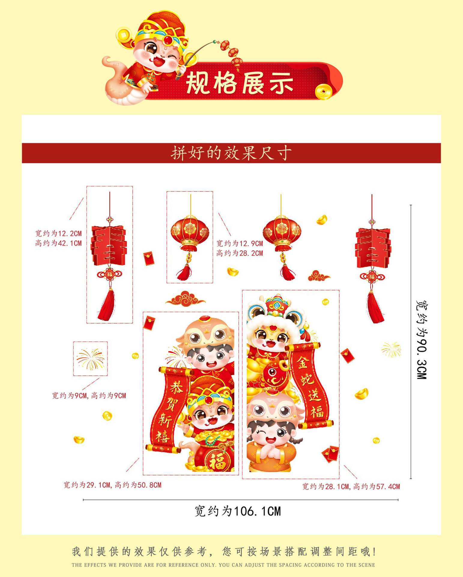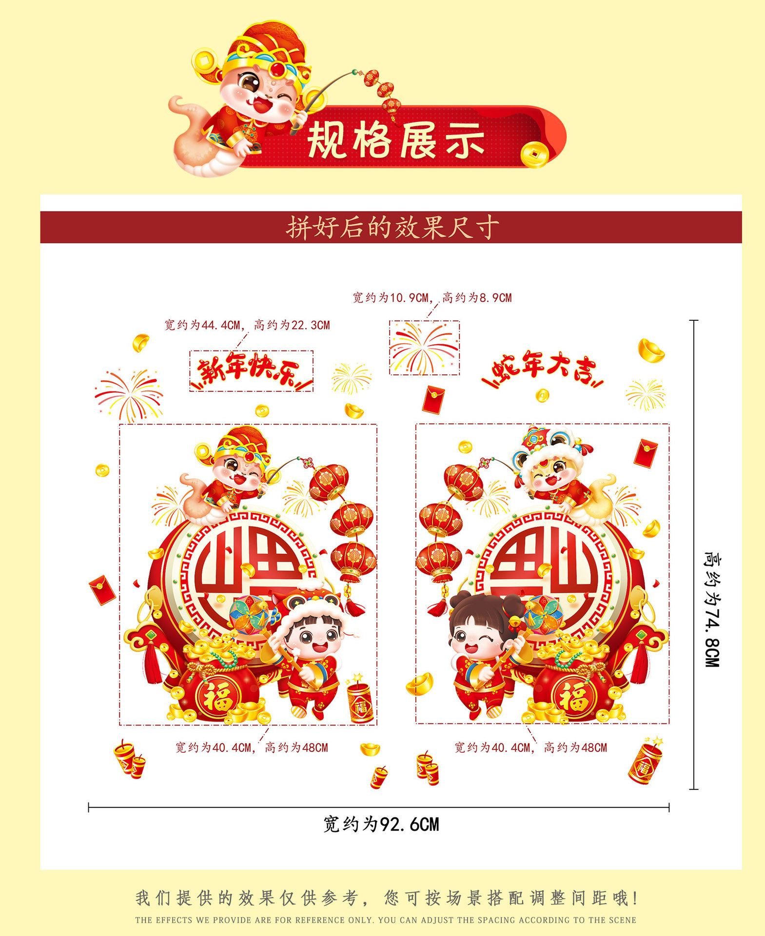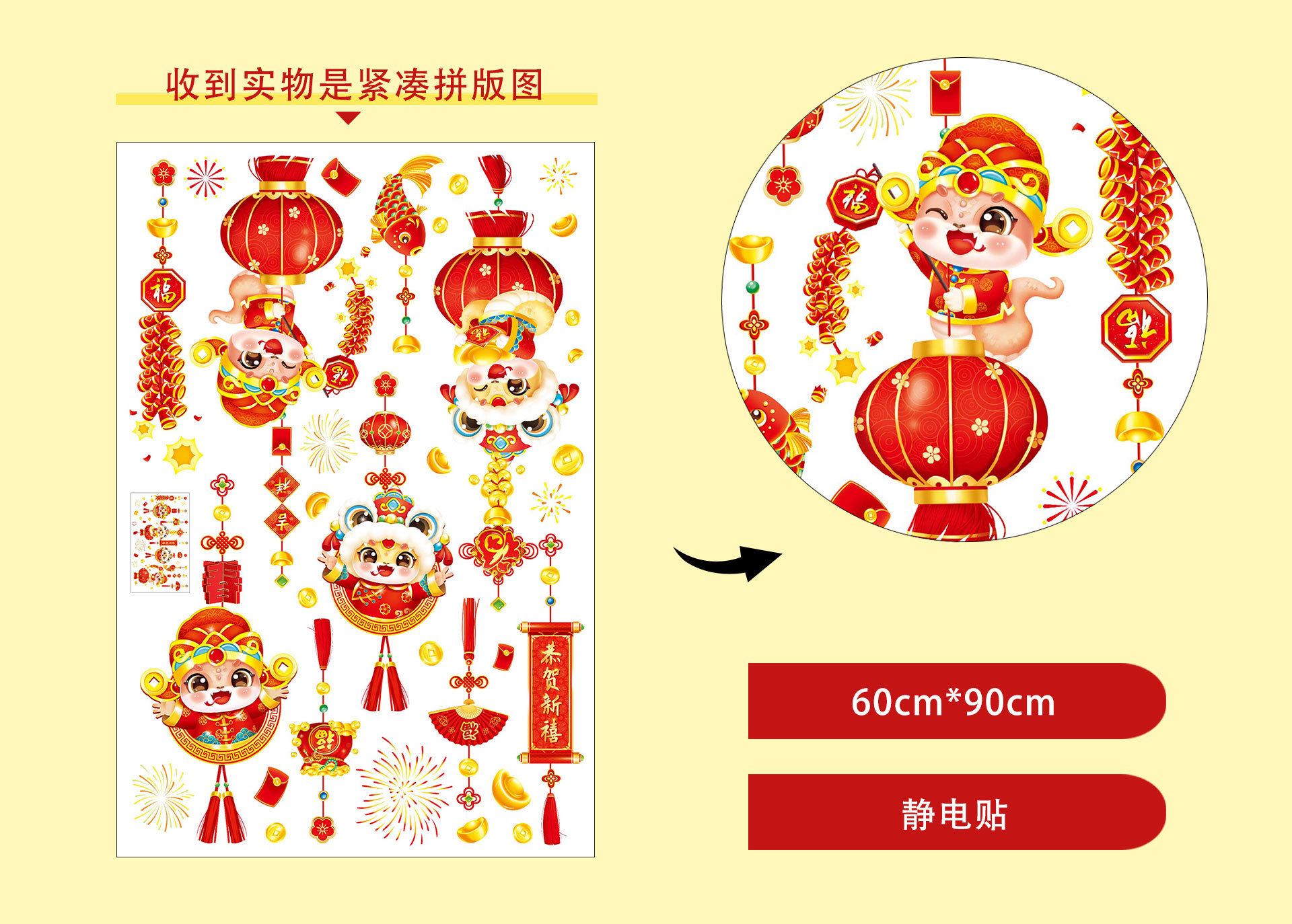 2025 년 뱀 새 봄 축제 장식 정전기 스티커 새해 창 유리 도어 및 창 스티커 축제 새해 준비