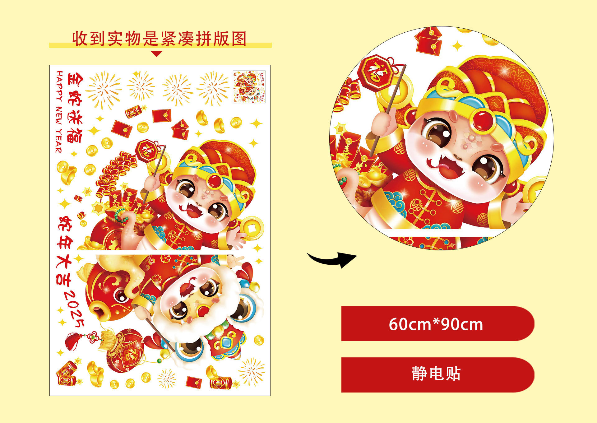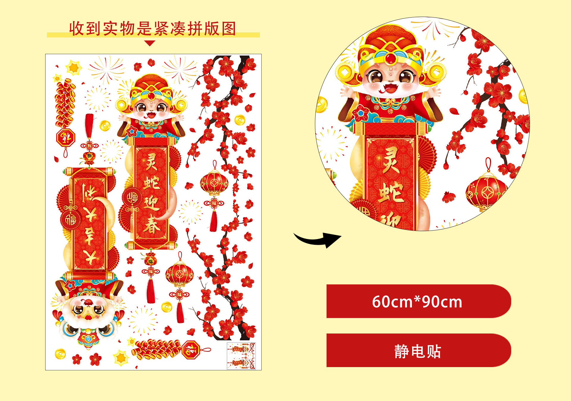2025 년 뱀 새 봄 축제 장식 정전기 스티커 새해 창 유리 도어 및 창 스티커 축제 새해 준비스토어 가기