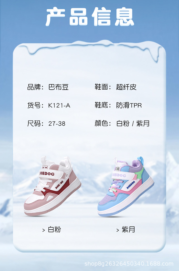 바부 콩 어린이 보드 신발 소녀 신발 겨울 따뜻한 면화 2024 새로운 중학교 어린이 운동화스토어 가기