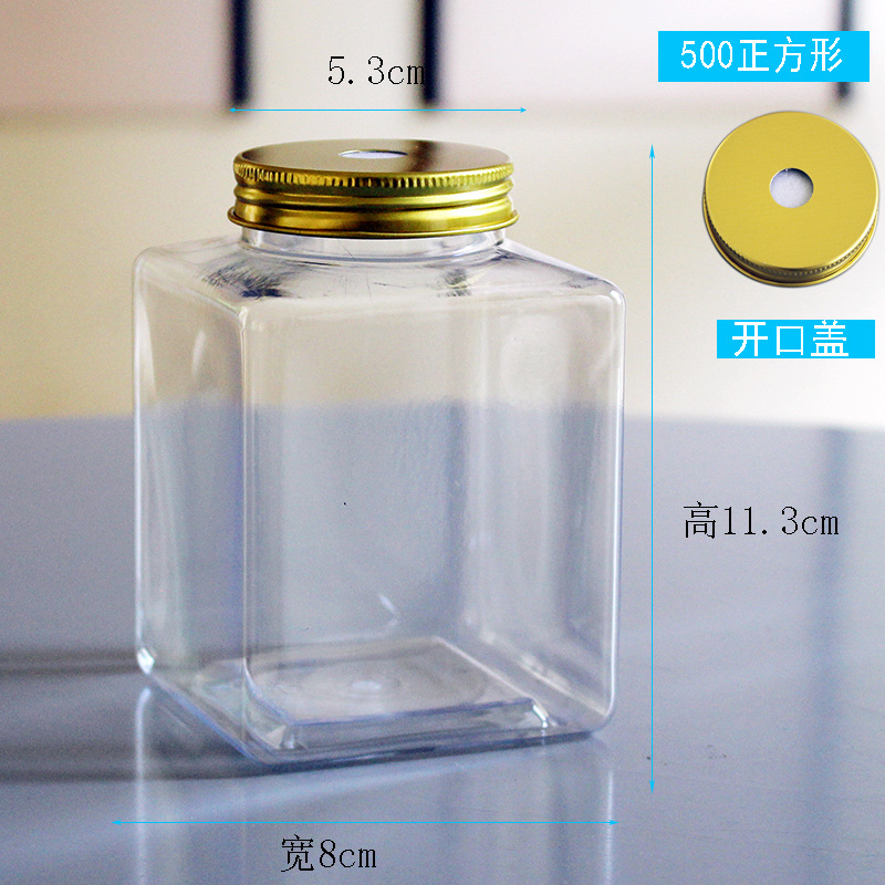 • 500ml 사각 실린더 + 골드 오프닝 캡 + 스마일리 페이스 스티커