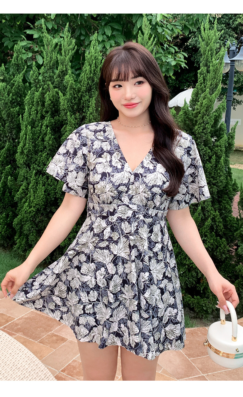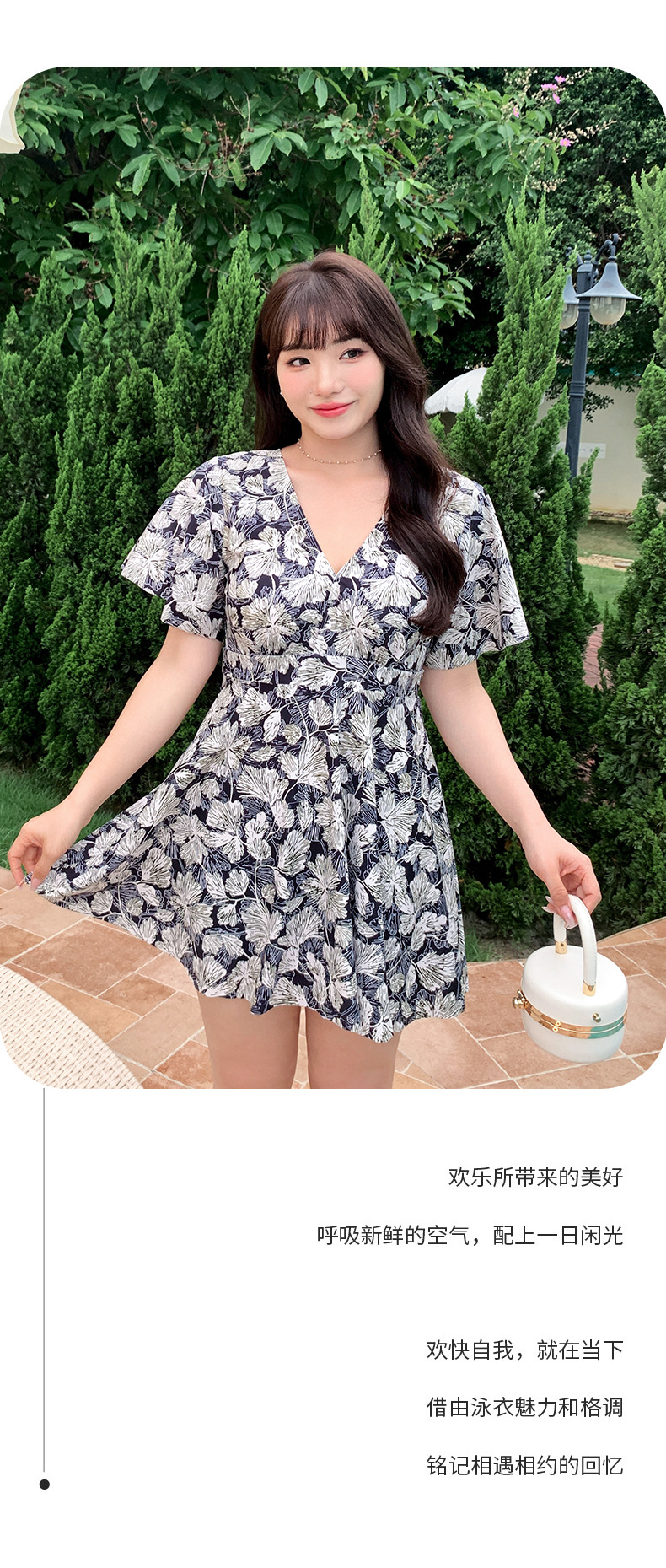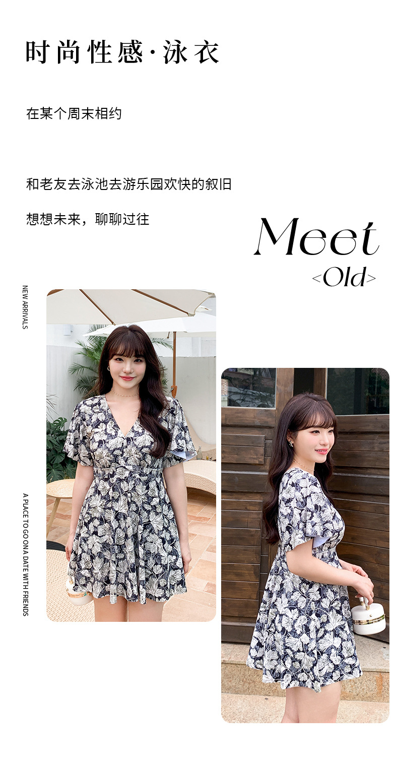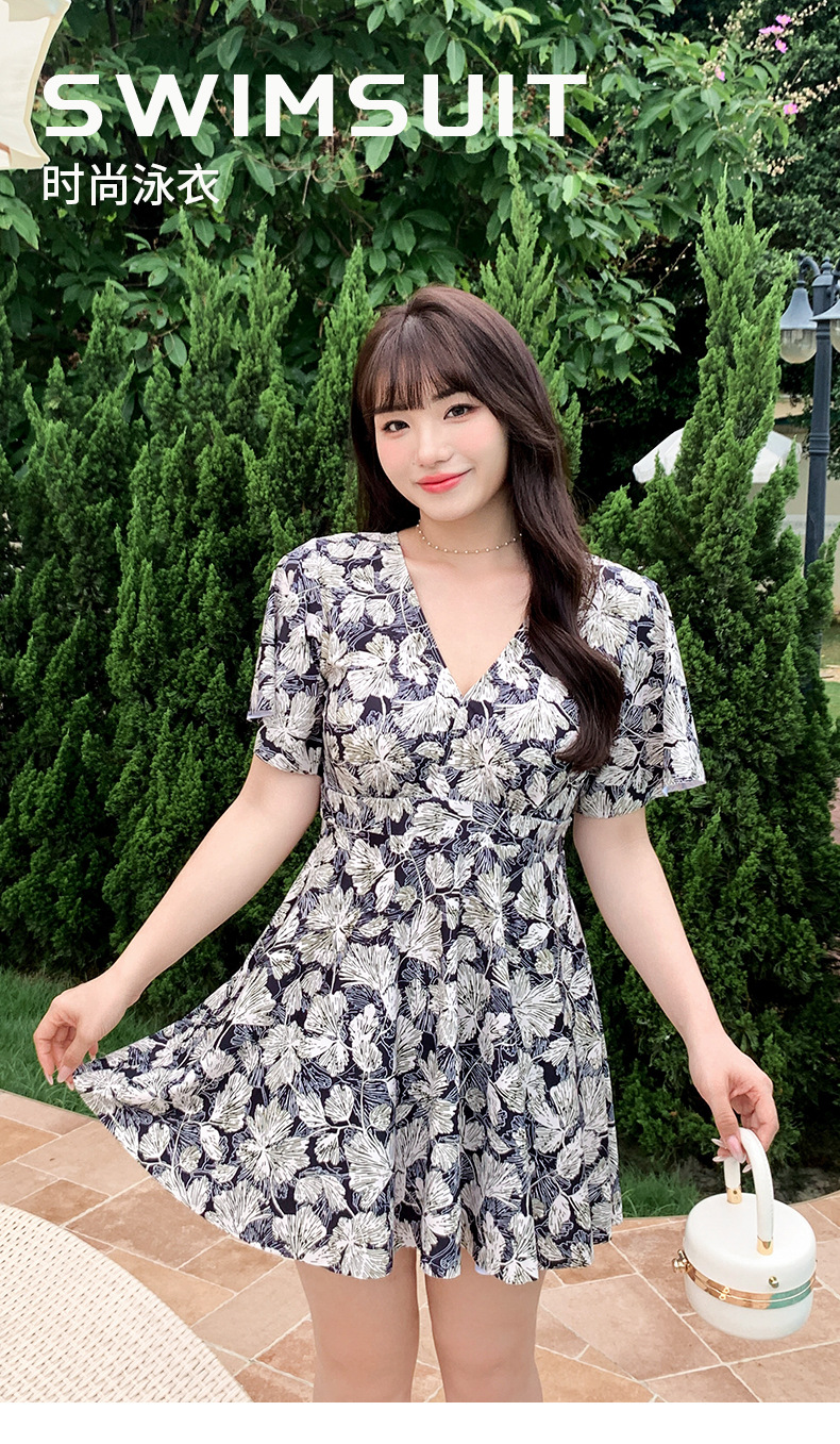 수영복 여성의 플러스 사이즈 지방 mm300 kg 배꼽 보수적 인 섹시한 원피스 슬림 어머니 수영복 온천 프린트 수영복스토어 가기