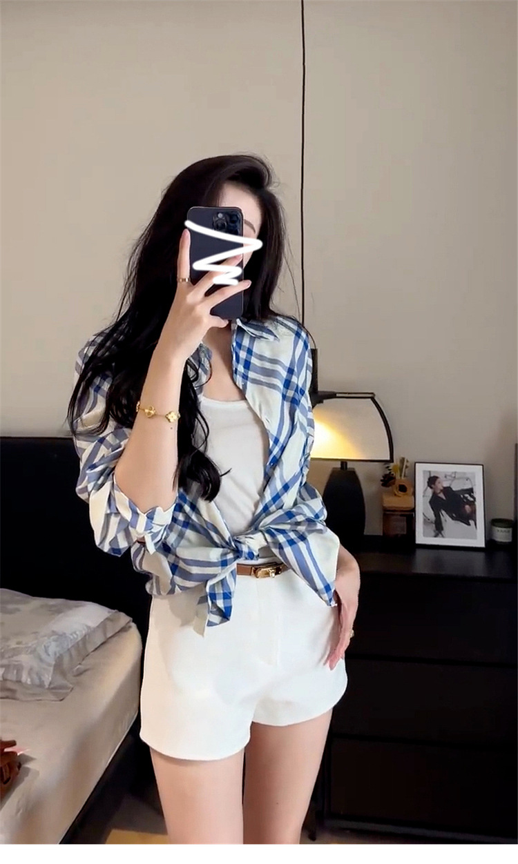 한국 스타일 우아한 콘트라스트 컬러 체크 셔츠 여성 가을 전문 통근 신식 셔츠 독특한 슈퍼 좋은 탑 코트스토어 가기