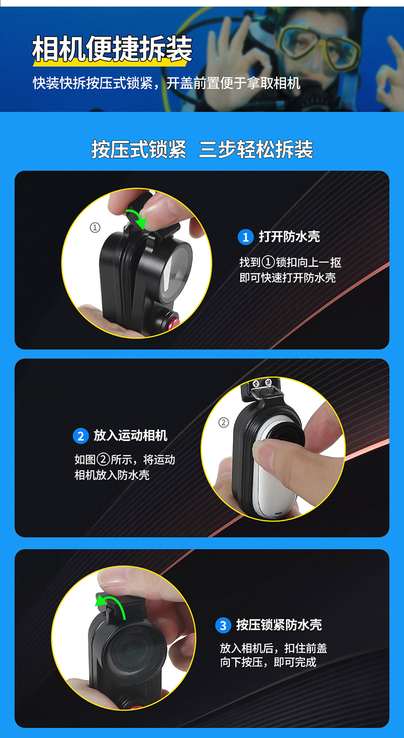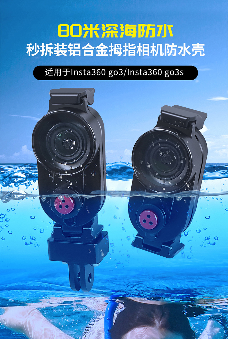 2.适用Insta360 go3/go3s拇指相机 ,防水深度可达80M;
