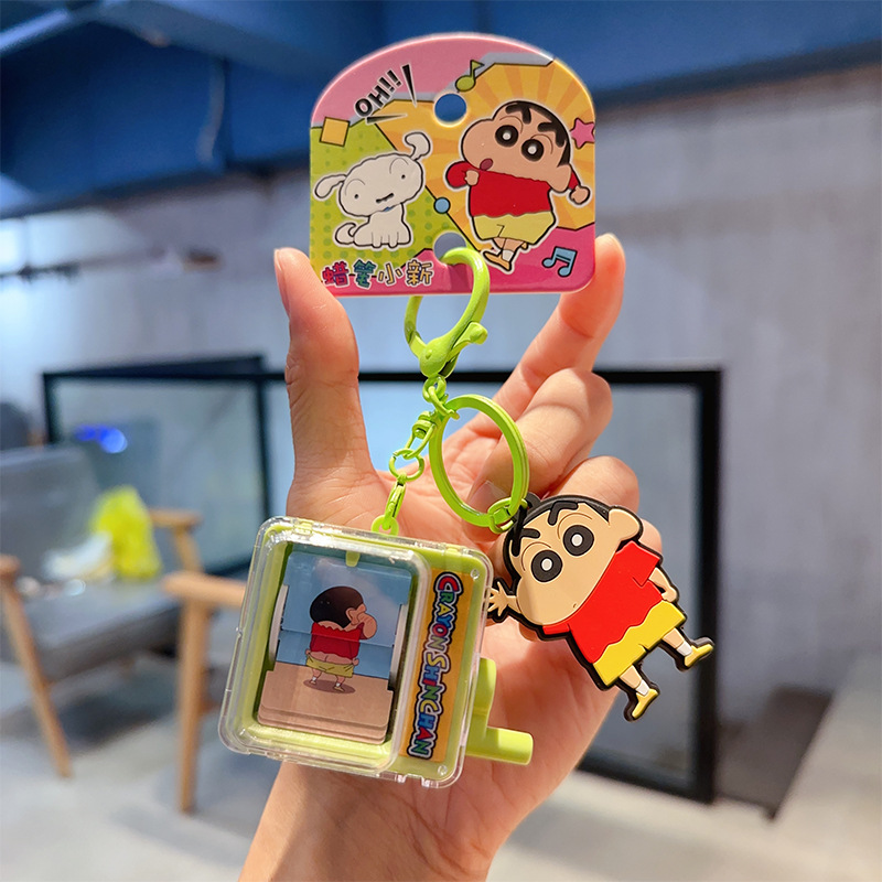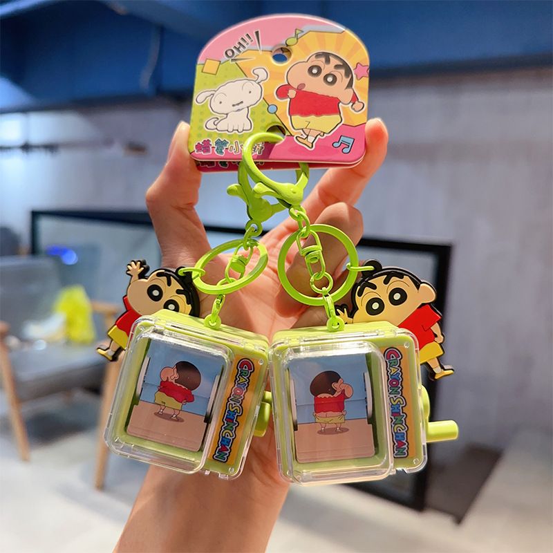 절묘한 창조적 인 만화 주변 게임 정품 크레용 작은 새로운 핸드 플립 머신 키 체인 여성 귀여운 작은 펜던트스토어 가기