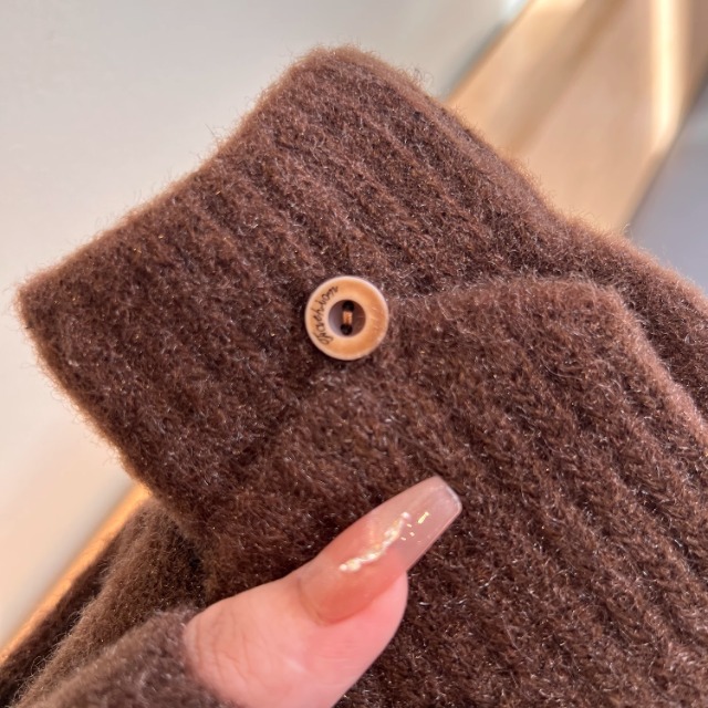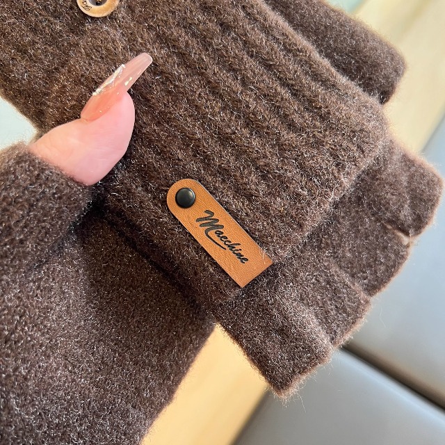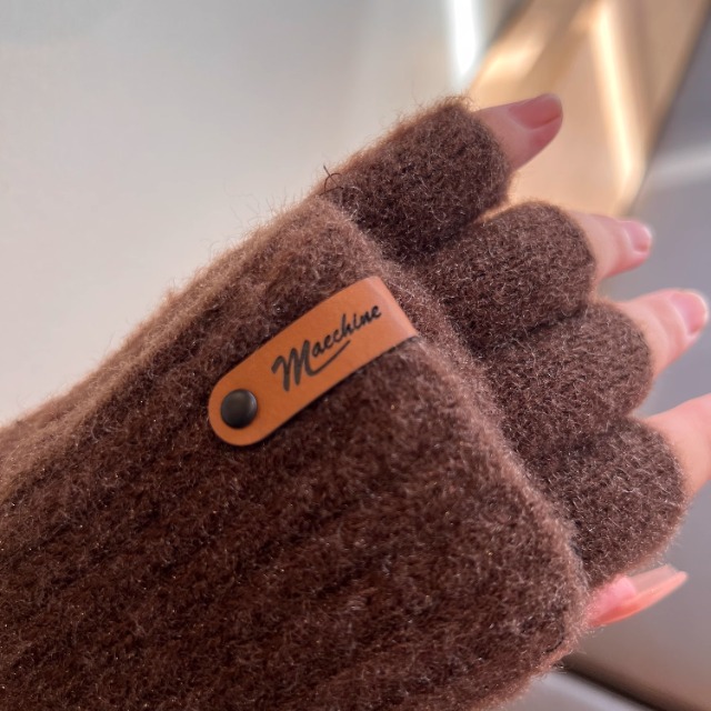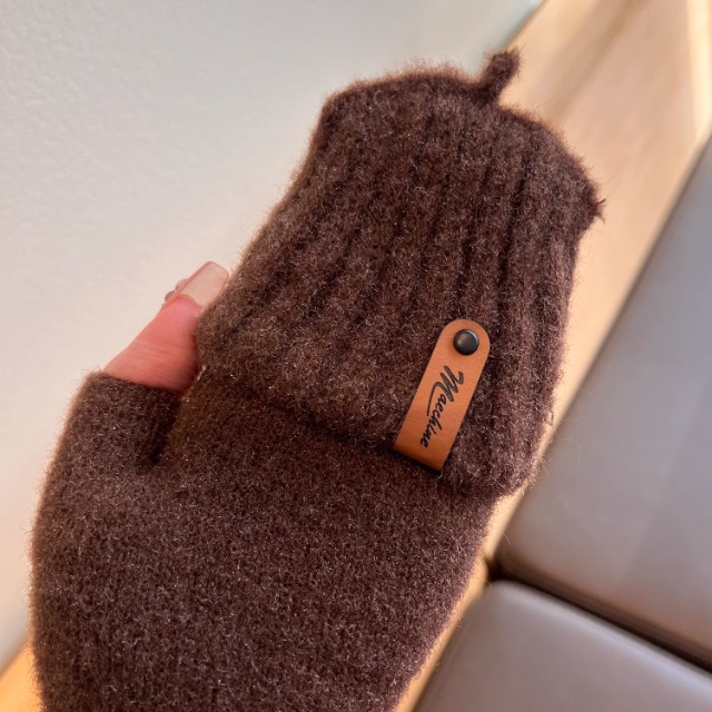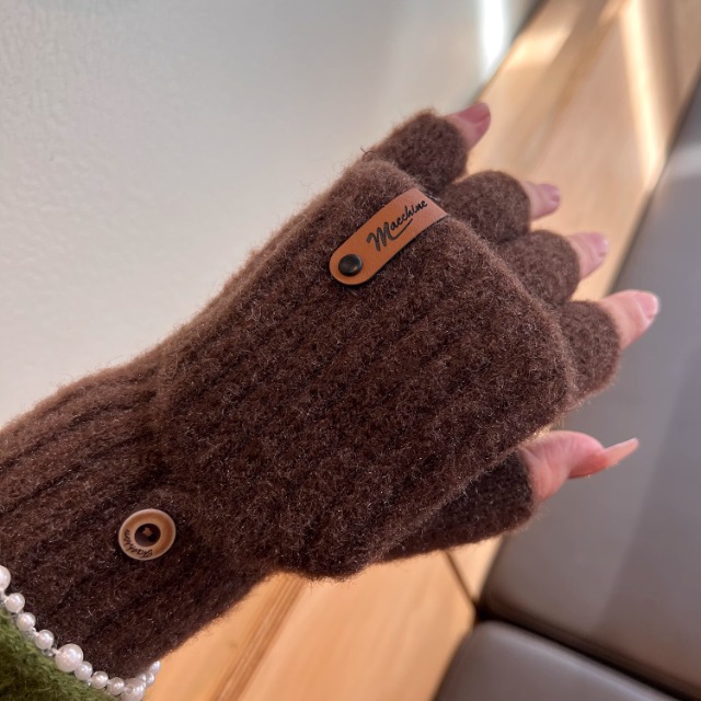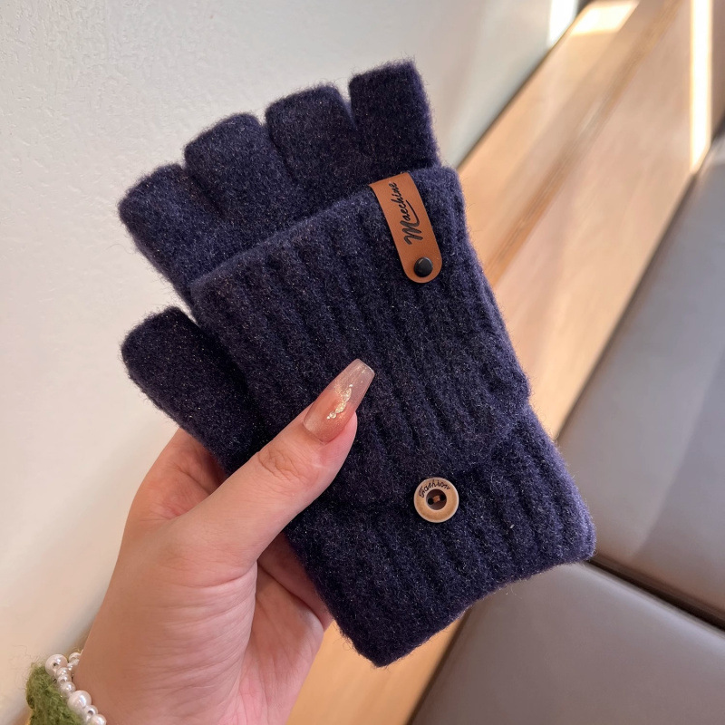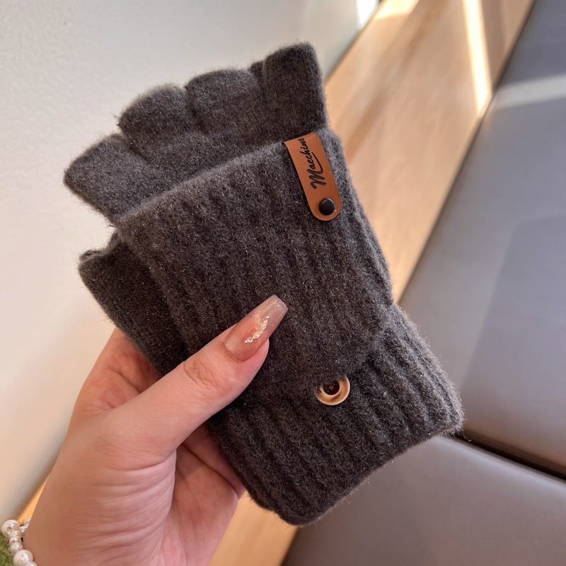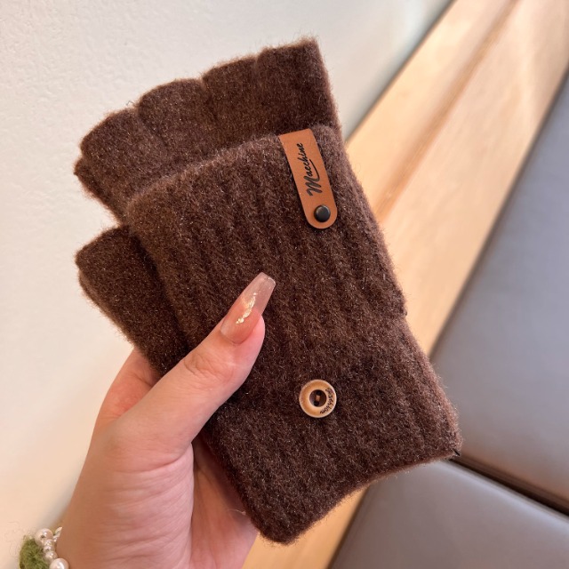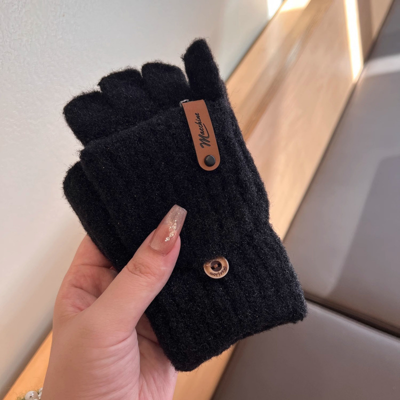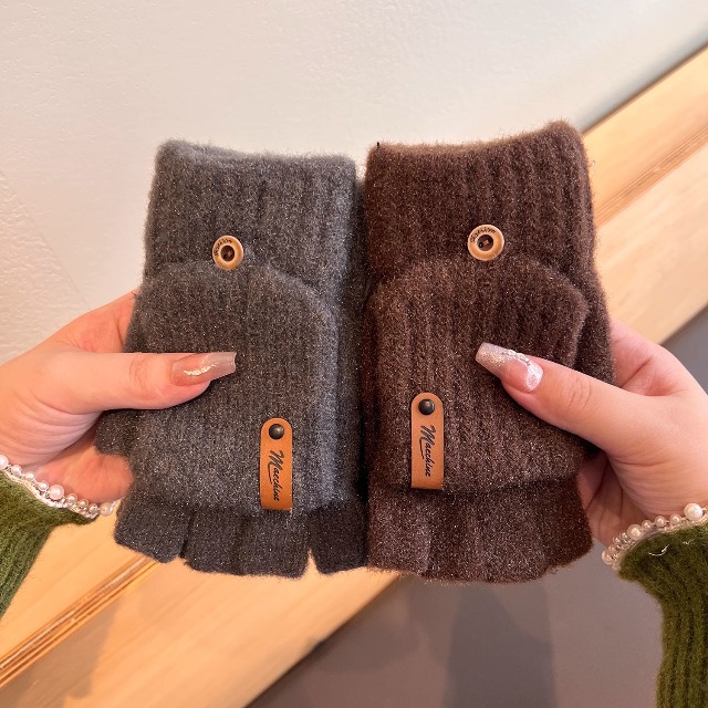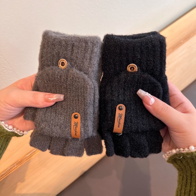 솔리드 컬러 장갑 남성용 겨울 따뜻한 봉제 냉장 승마 학생 니트 수직 스트라이프 플립 커버 여성용 하프 핑거 장갑