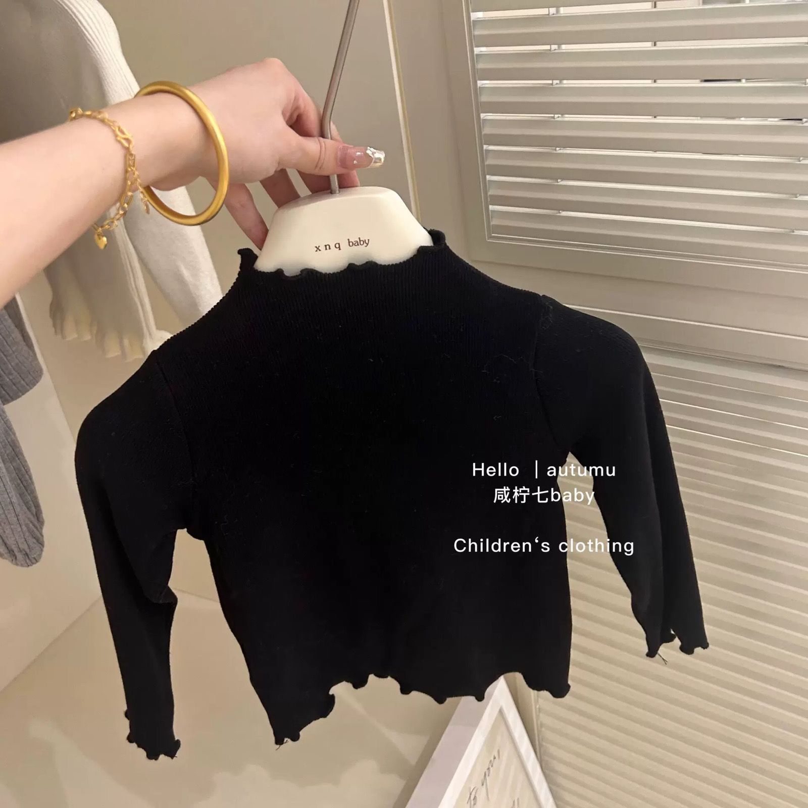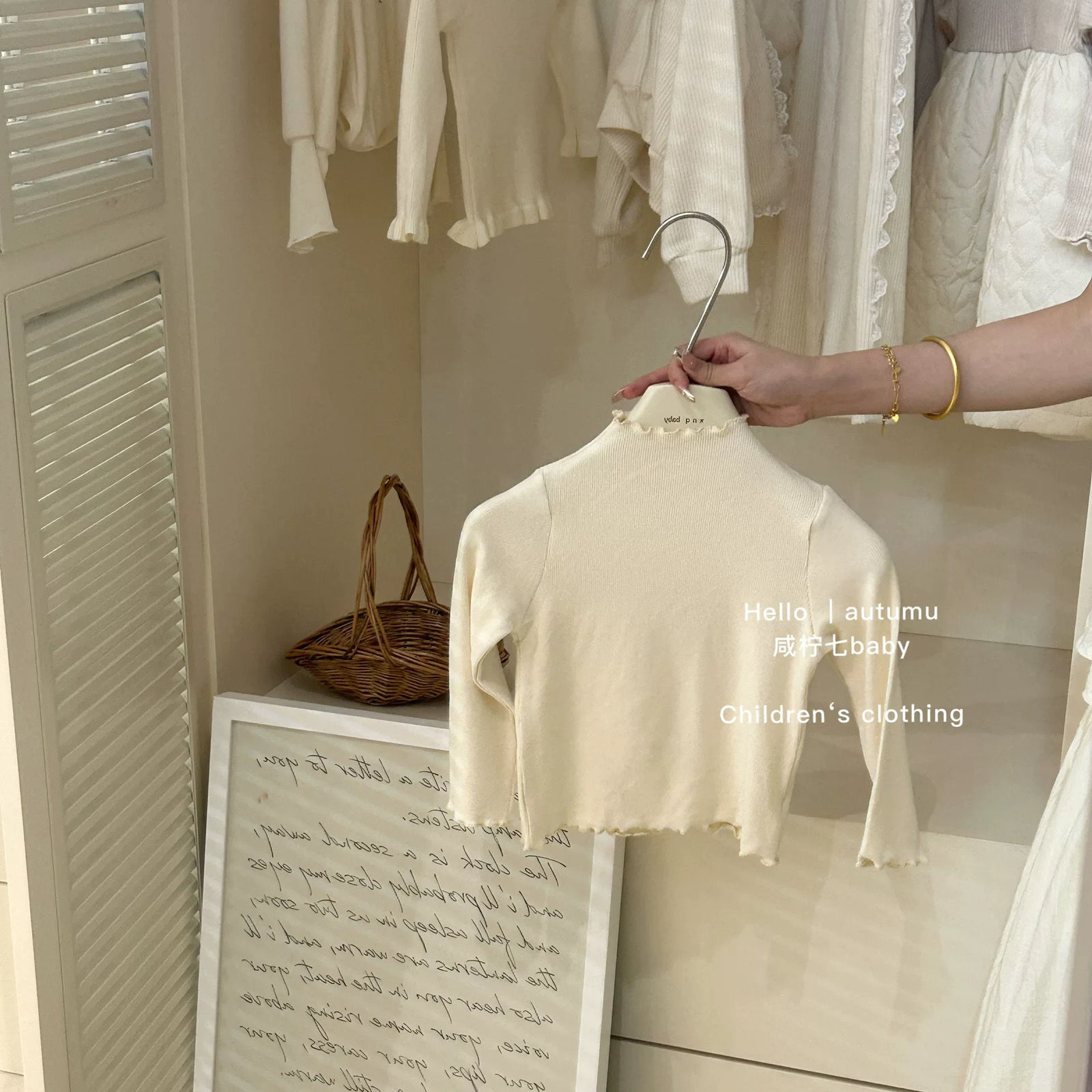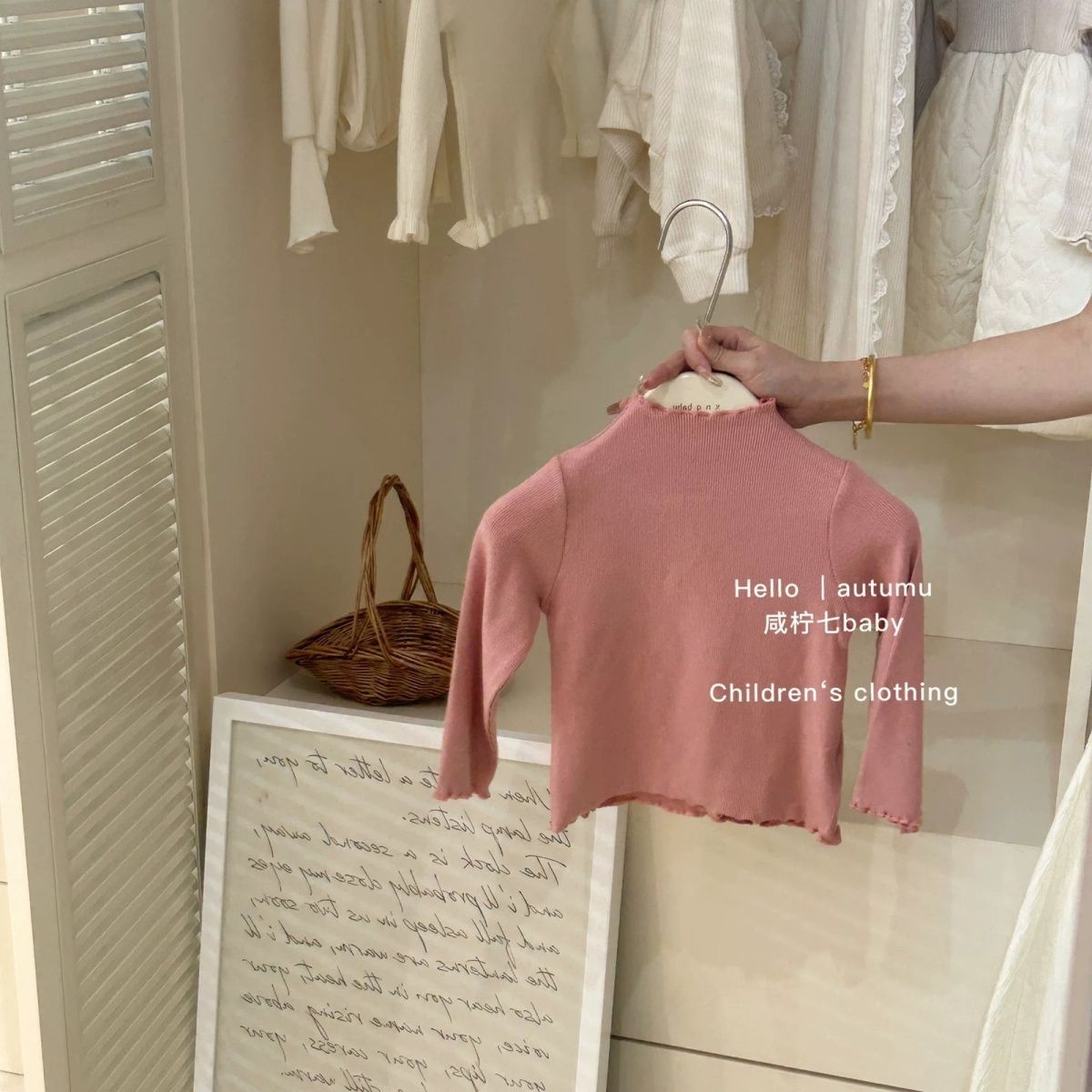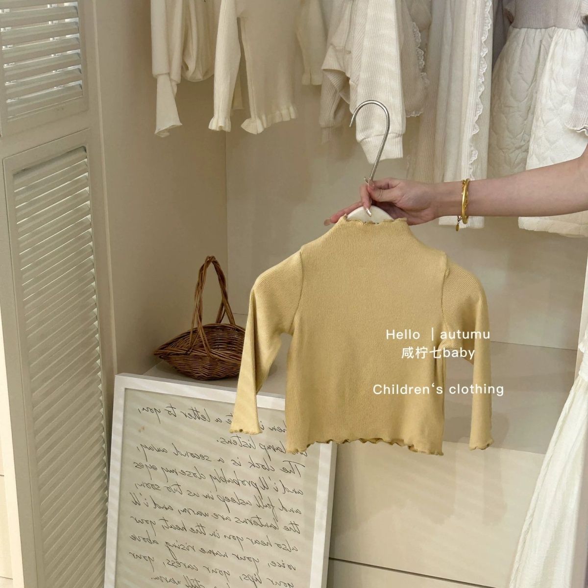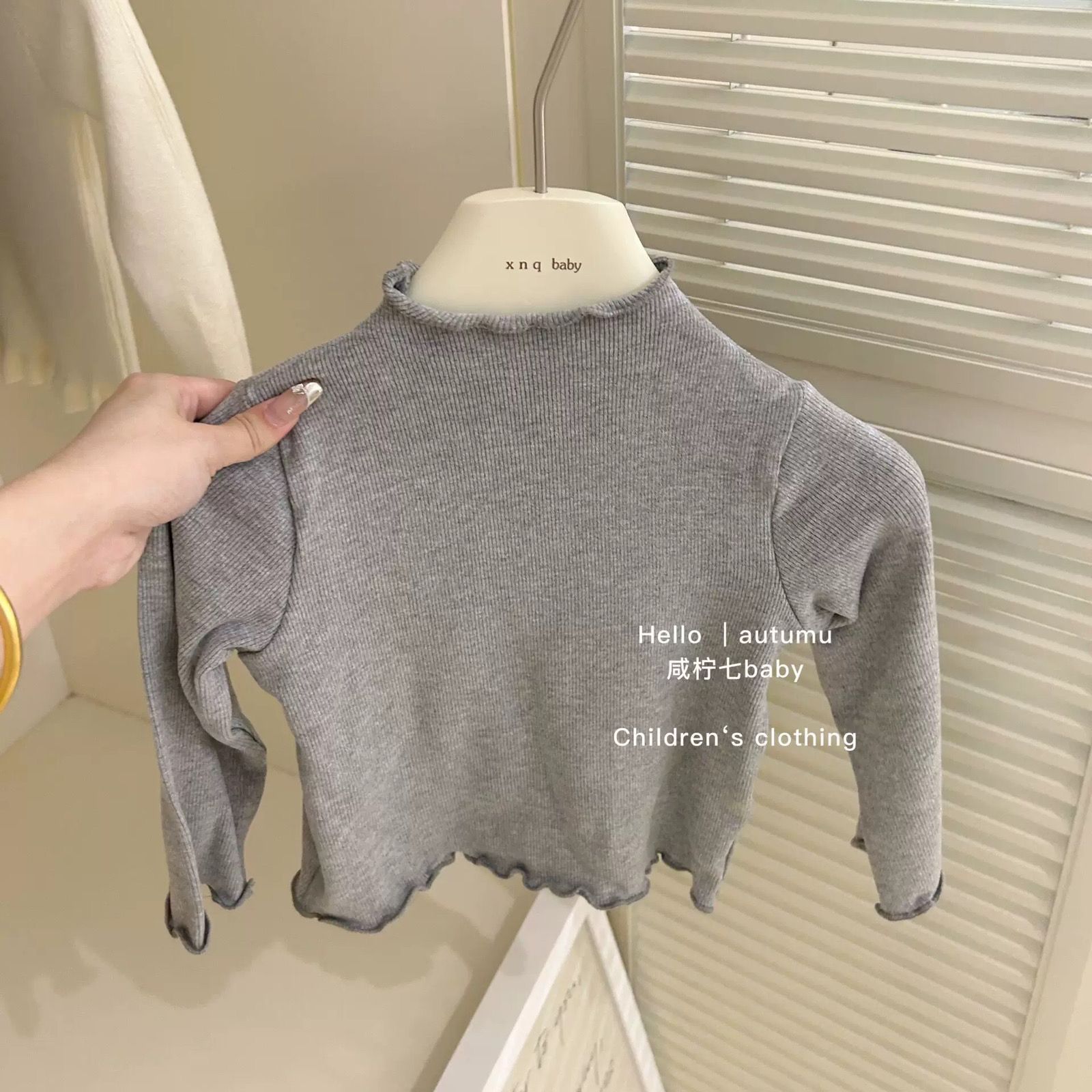 봄과 가을 여성 아동복 티셔츠 아기의 서양식 어린이 독특한 유행 한국식 우드-이어 엣지 솔리드 컬러 내외입기 베이스 셔츠스토어 가기