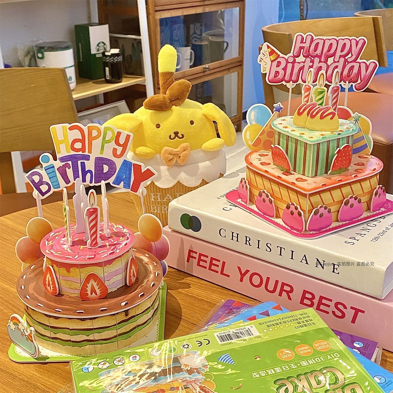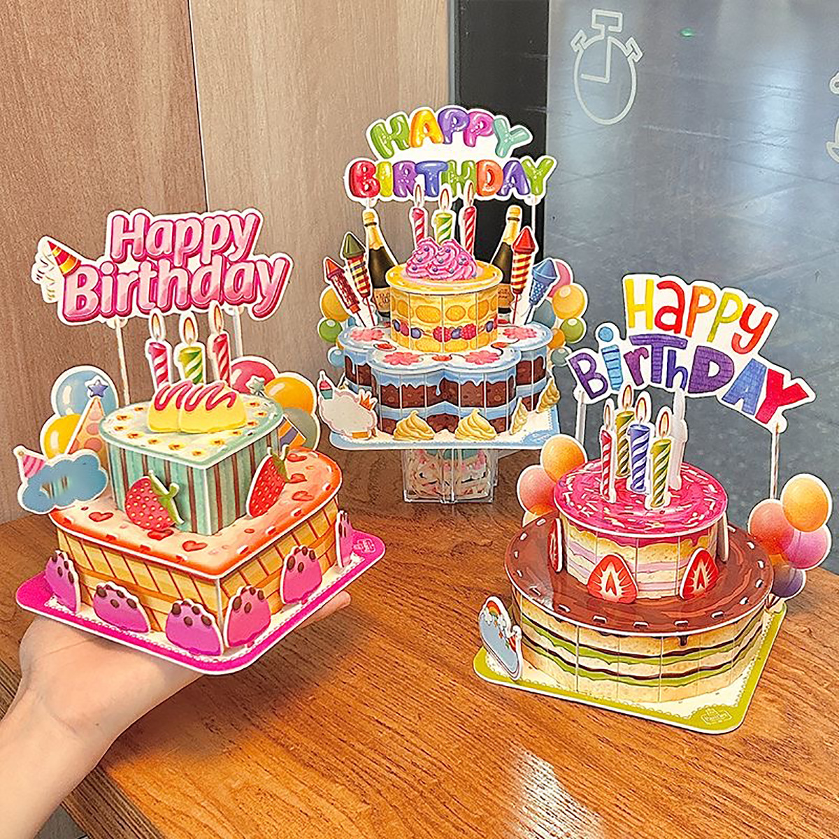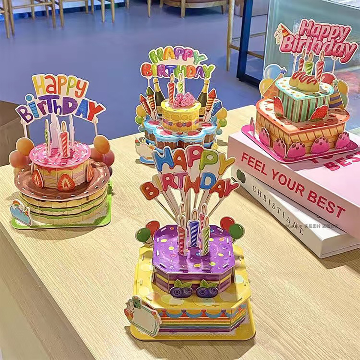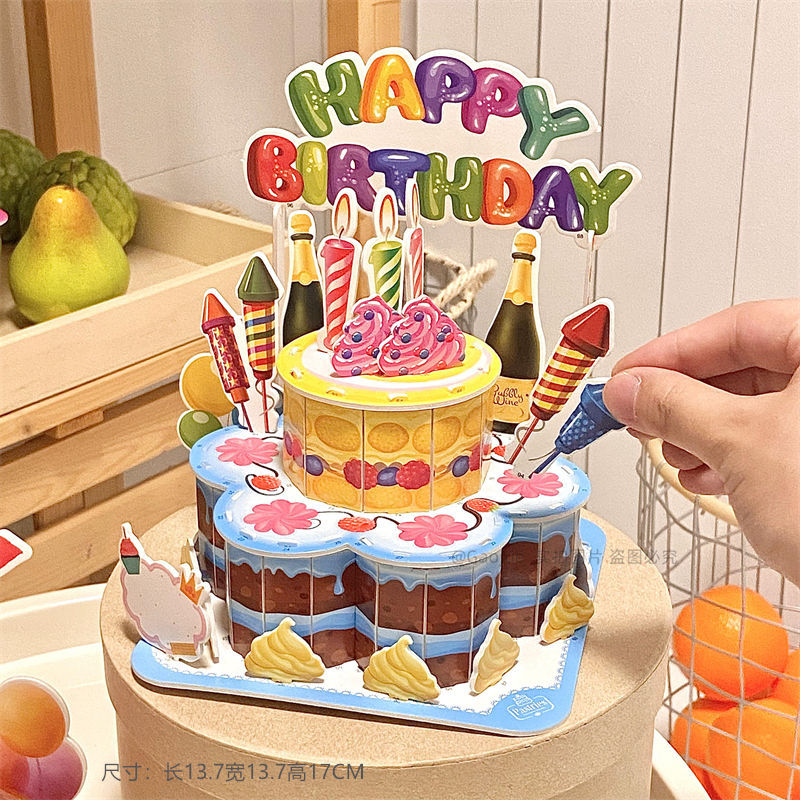 생일 축하 3D 퍼즐 수제 DIY 수제 생일 선물 인 바람 시뮬레이션 일치하는 모델 케이크스토어 가기