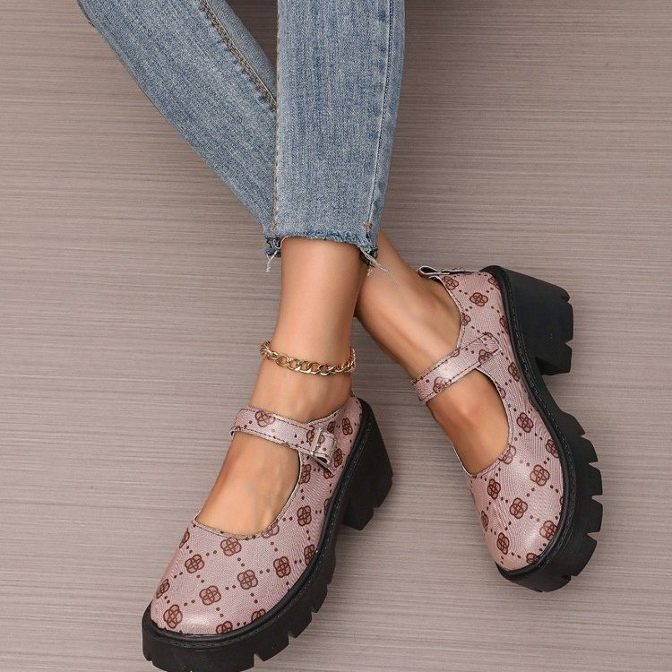 2024 봄과 가을 새로운 두꺼운 힐 하이 힐 라운드 헤드 버클 싱글 신발 여성 유럽과 미국의 국경 대외 무역 플러스 사이즈 여성 신발 트렌디스토어 가기