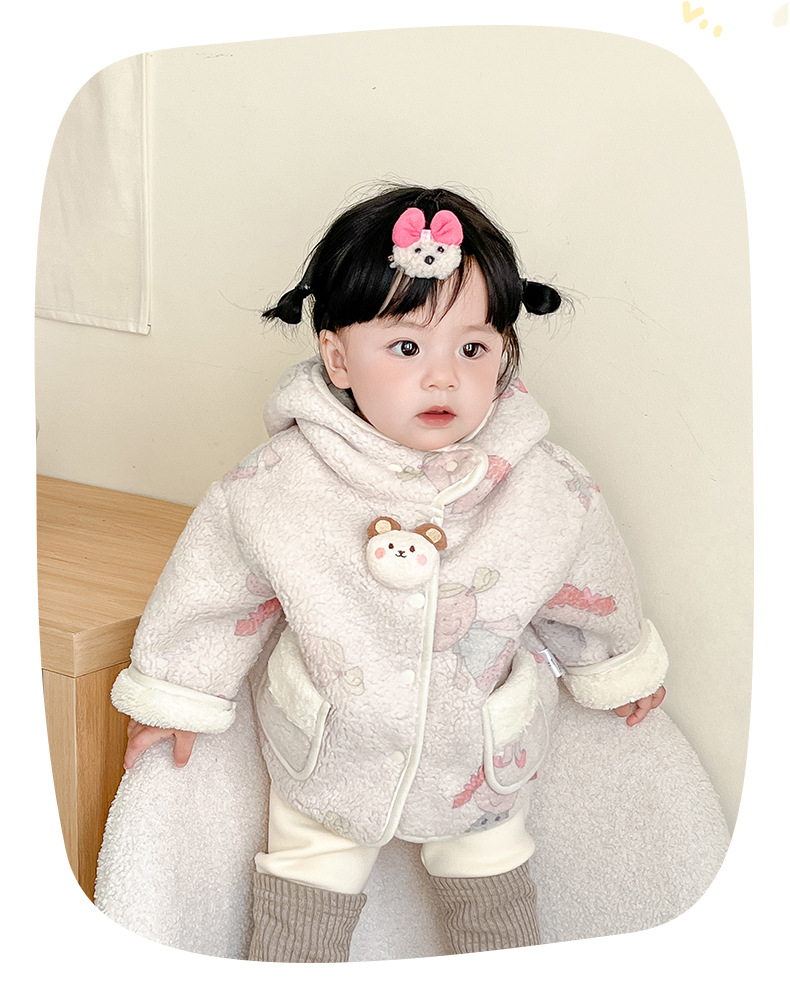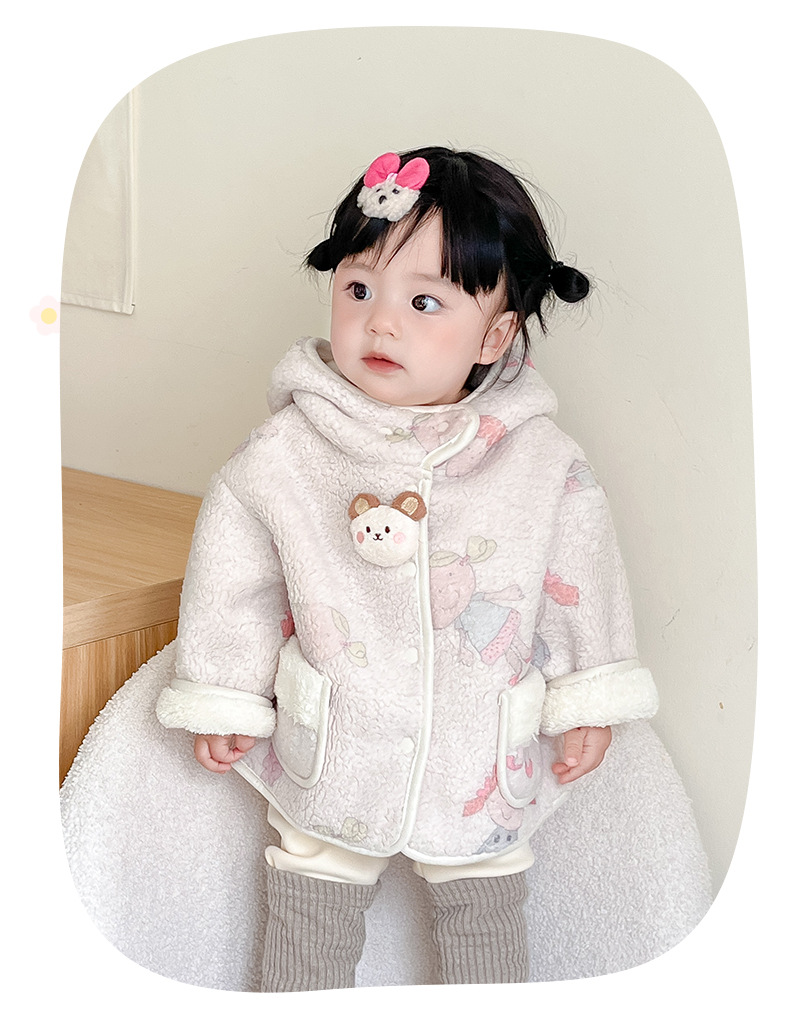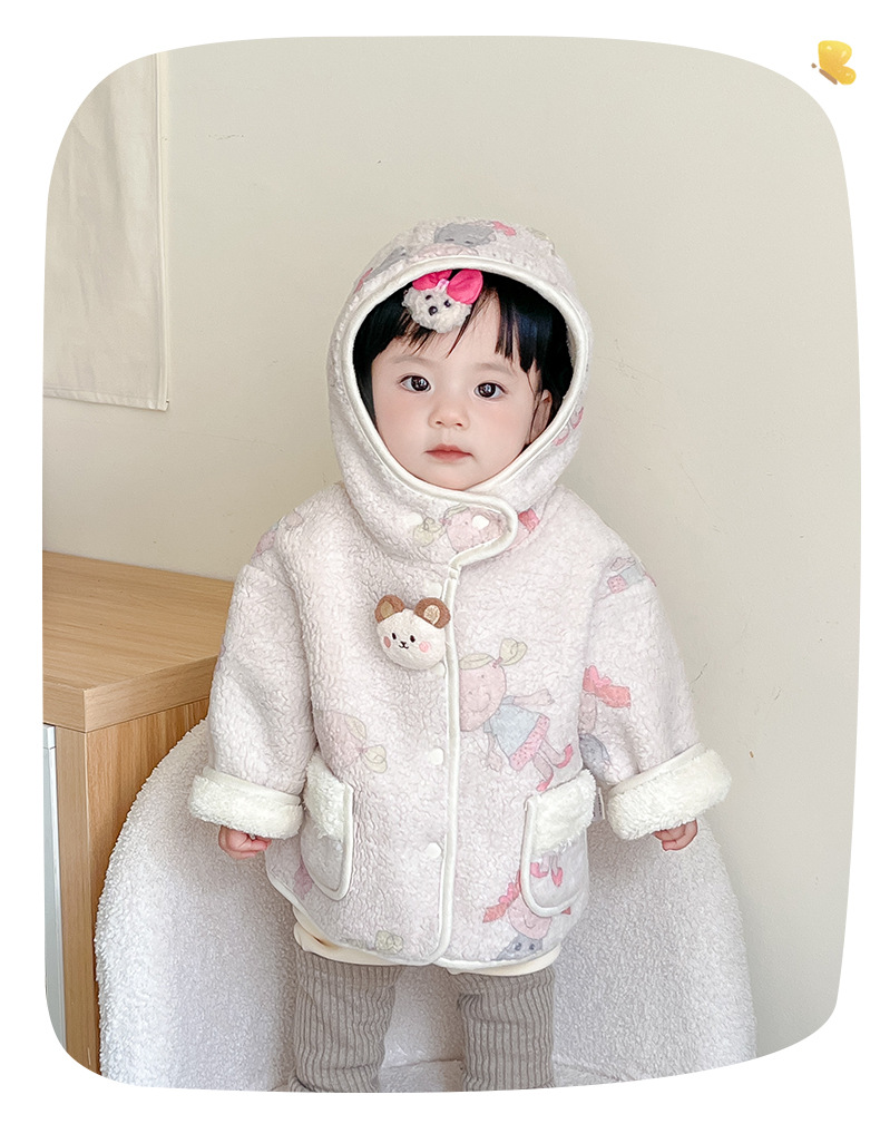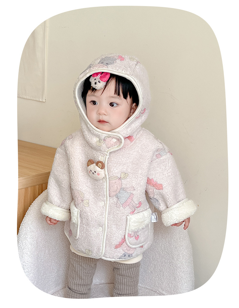 2025 새로운 소녀 가을과 겨울 코트 아기 양모 기모 코트 3960 아기 어린이 한국 캐주얼 따뜻한스토어 가기
