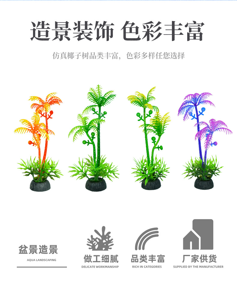 공장 직접 물고기 탱크 모래 테이블 장식 플라스틱 시뮬레이션 코코넛 나무 수생 식물 가짜 꽃 수족관 해변 조경스토어 가기
